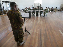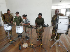 8月18日(月)~9月19日(金)の間、陸上自衛隊中央音楽隊からの派遣隊員は、パプアニューギニア国防軍軍楽隊員に対し、軍楽隊員の演奏技術に係る指導、指導者の育成及び軍楽隊編成等に関する教育を行いました。