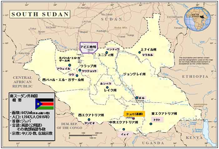 南部スーダンにおいては、スーダン政府(イスラム教・アラブ系)とスーダン人民解放運動・軍(キリスト教・アフリカ系)の対立を経て、2005年1月、両者はCPA(南北包括和平合意)に署名し、紛争が終結した。同年3月、CPA履行支援等を任務とする国連スーダン・ミッション(UNMIS)が設立され、我が国は2008年10月以降、UNMIS司令部要員として自衛官2名を派遣。2011年1月に実施された南部スーダン住民投票の結果を受け、2011年7月9日に南スーダンが独立。これに伴い、UNMISがその任務を終了する一方、平和と安全の定着および南スーダンの発展のための環境構築支援等を目的として、国際連合南スーダン共和国ミッション(UNMISS)が設立された。我が国は、国連事務総長からの協力要請に基づき、同年11月に司令部要員を派遣し、また2012年1月より施設部隊等を順次派遣した。