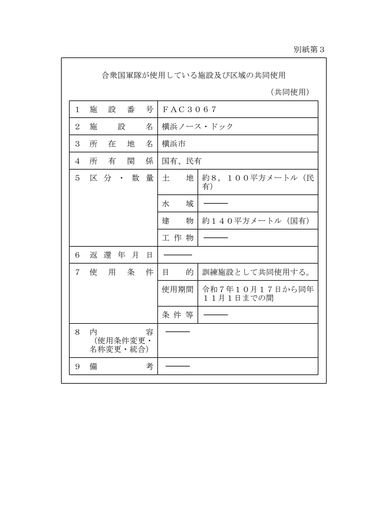 (別添)地位協定第2条に基づく施設及び区域の共同使用等に関する協定