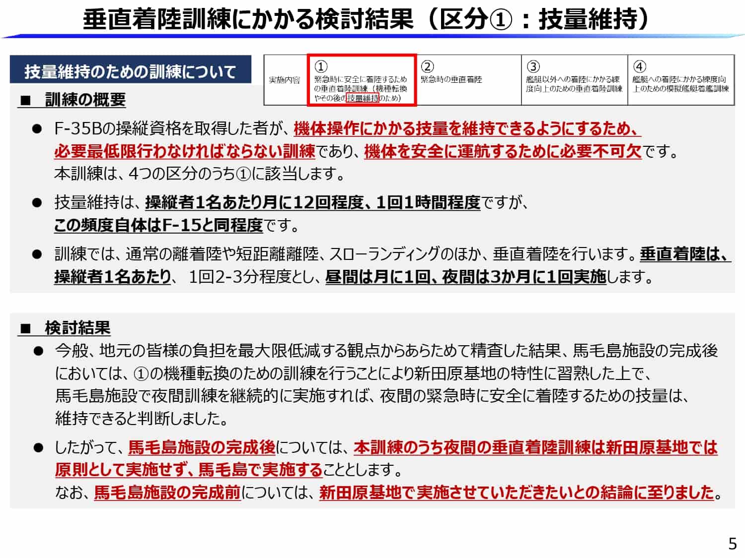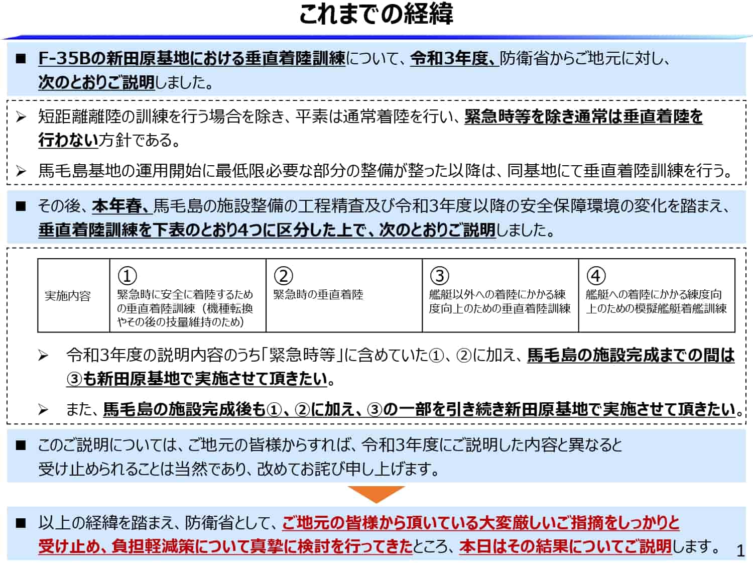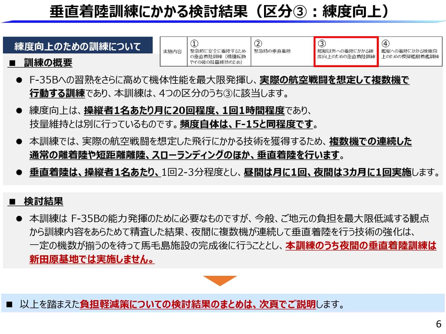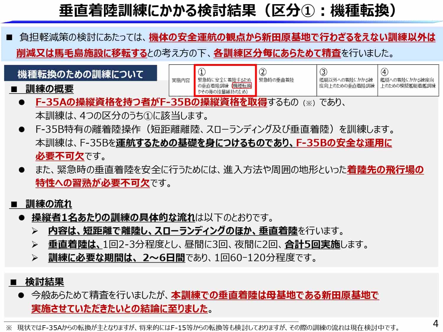 F-35Bの垂直着陸訓練に係る負担軽減策等について