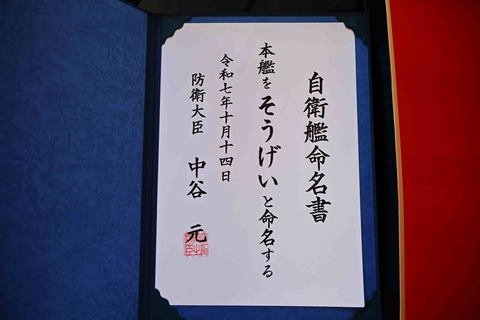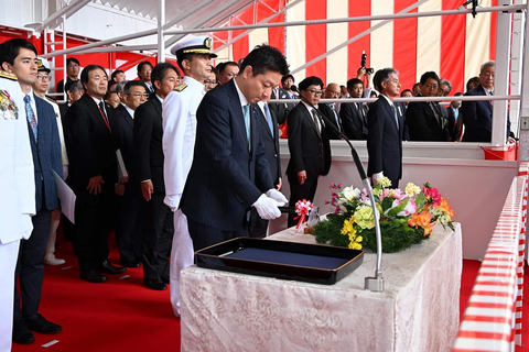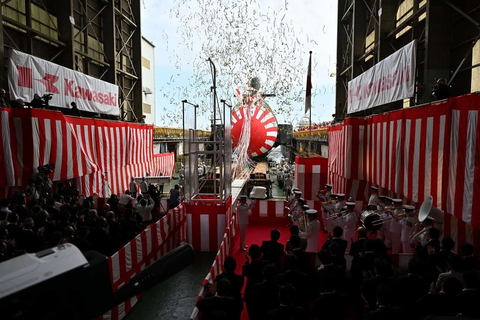 令和7年10月14日(火)川崎重工業株式会社 神戸工場において、令和4年度計画潜水艦「そうげい」の命名式・進水式が行われました。