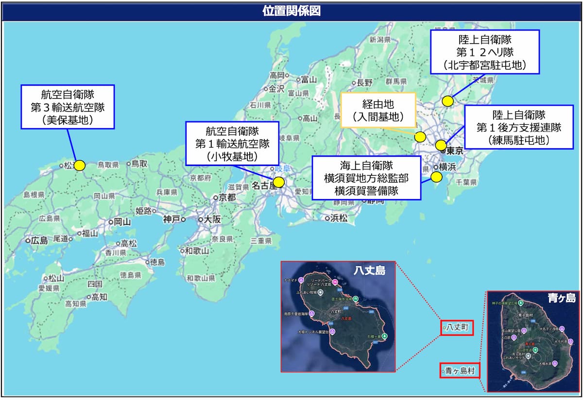・航空自衛隊第3輸送航空隊(美保・鳥取)のC-2×1機により支援物資を入間基地から八丈町へ輸送。(輸送品等:段ボールベッド、携帯トイレ、毛布、ブルーシート等)