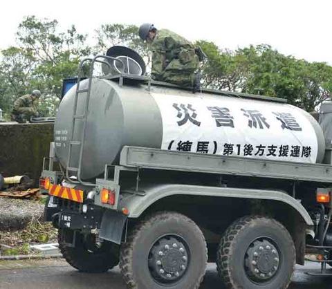 東京都八丈町において、陸上自衛隊第1後方支援連隊の水タンク車×1両による給水支援を開始。