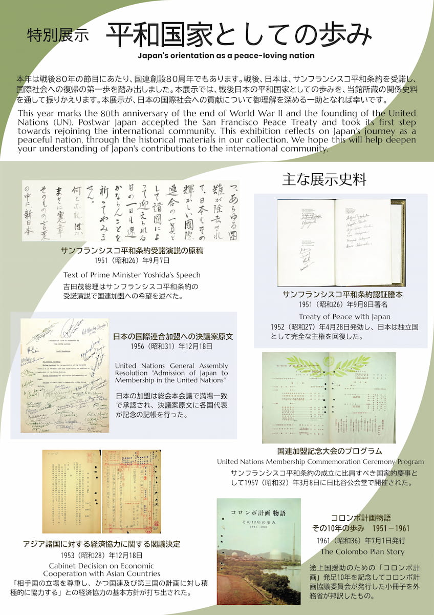 公式ホームページ:外務省外交史料館 戦後・国連創設80年 特別展示「平和国家としての歩み」