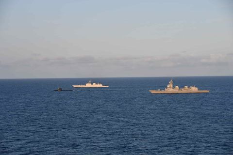 (1)海上自衛隊:護衛艦「あさひ」、補給艦「おうみ」、潜水艦