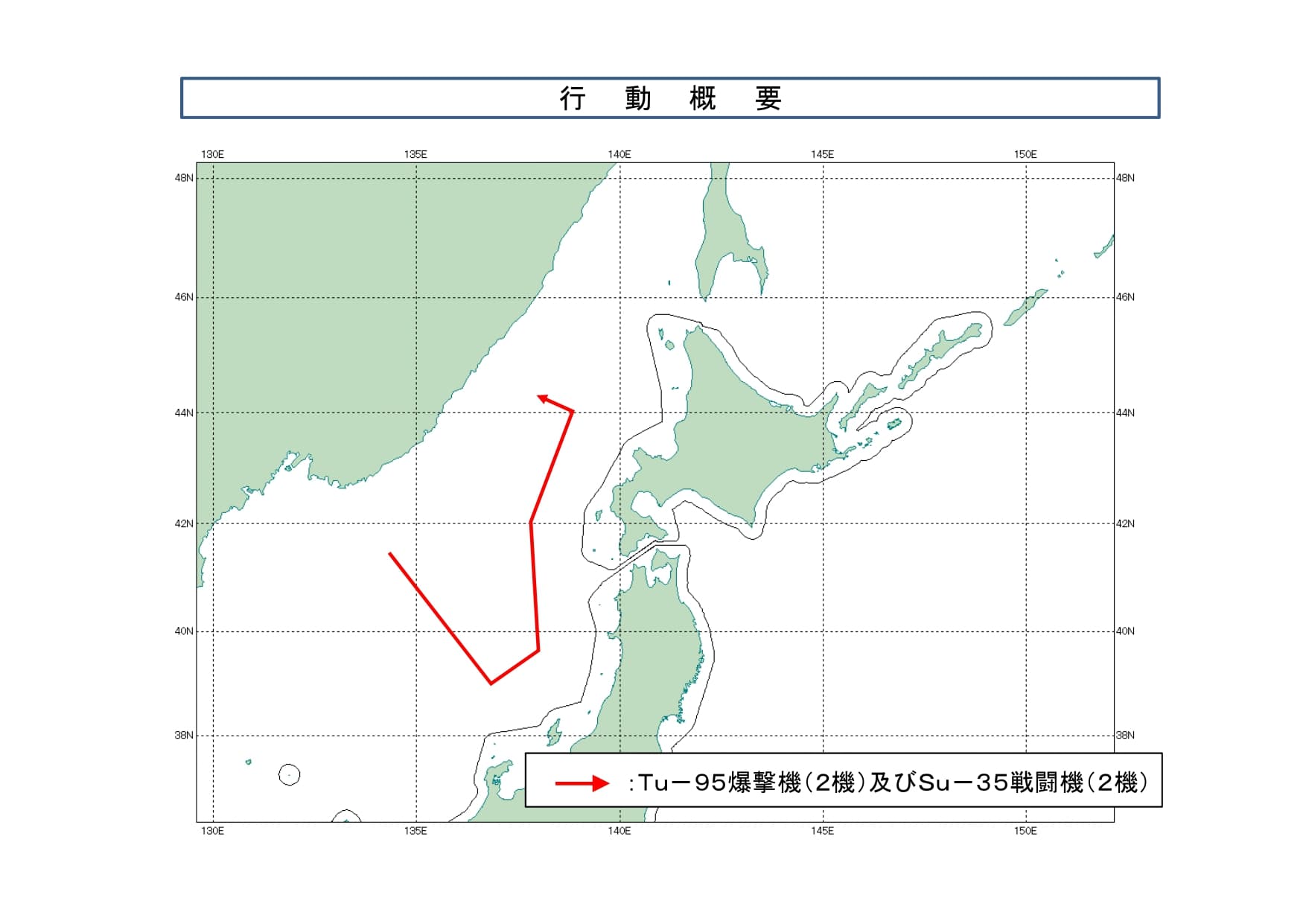 Tu-95爆撃機(2機)及びSu-35戦闘機(2機)の行動概要