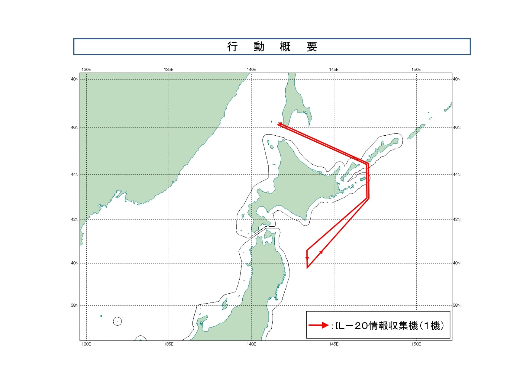ロシア軍機1機が大陸方面から飛来し太平洋及び日本海上空を飛行(10月29日、IL-20)