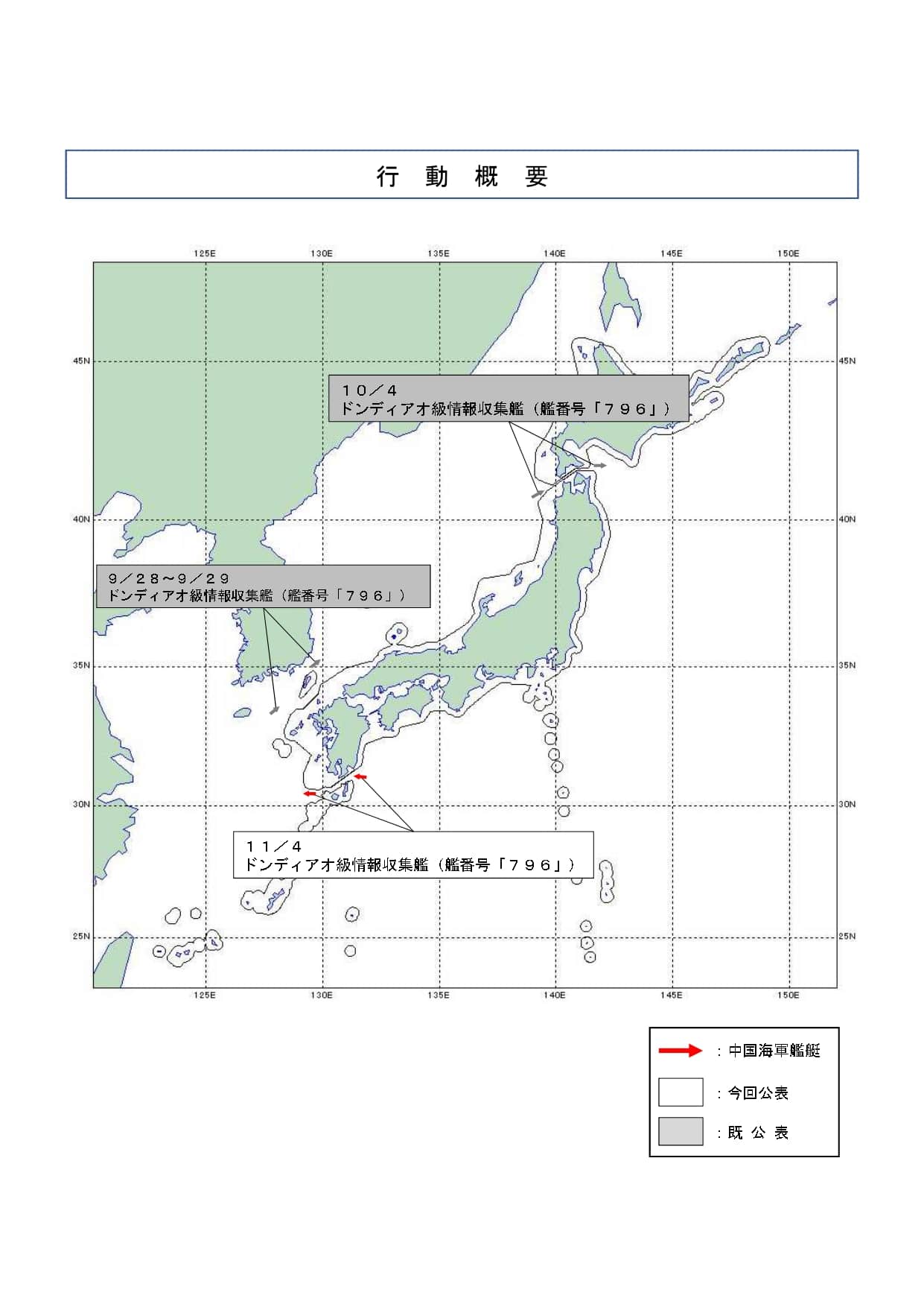 なお、当該艦艇は、9月29日(月)に対馬海峡を北東進し、10月4日(土)に津軽海峡を東進したものと同一である。