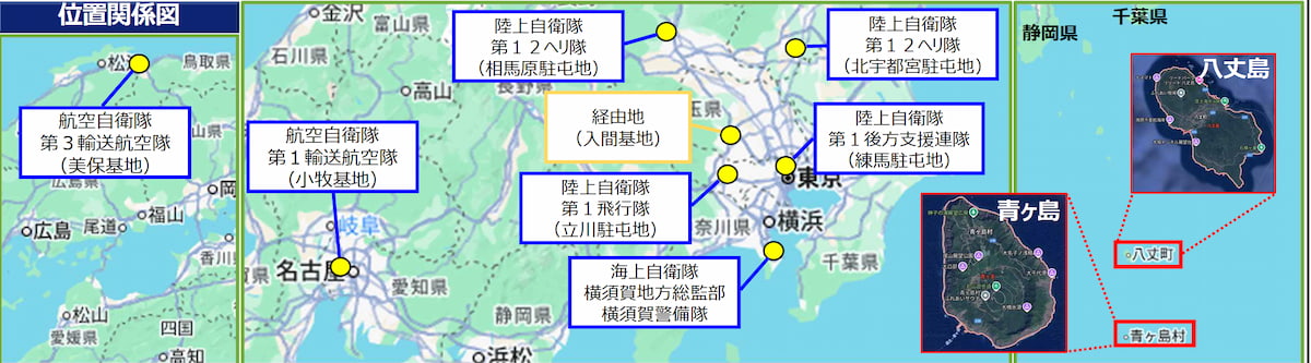 東京都庁:第1師団司令部×3名、八丈島役場:第1師団司令部×10名