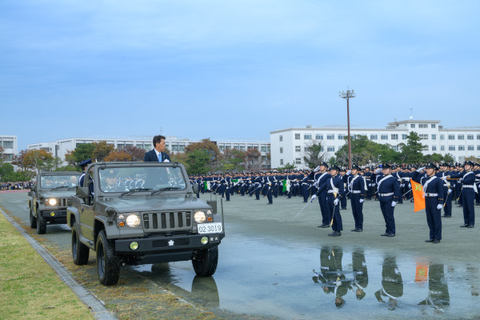 観閲式において、学生たちに対し訓示を行うとともに、教育研究施設や学生舎等の施設を視察したほか、開校記念祭に真摯に取り組む学生たちと交流し、激励を行いました。