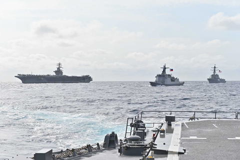 空母「ニミッツ」、駆逐艦「グリッドレイ」、駆逐艦「ウェイン・E・マイヤー」、駆逐艦「レナ・サトクリフ・ヒグビー」