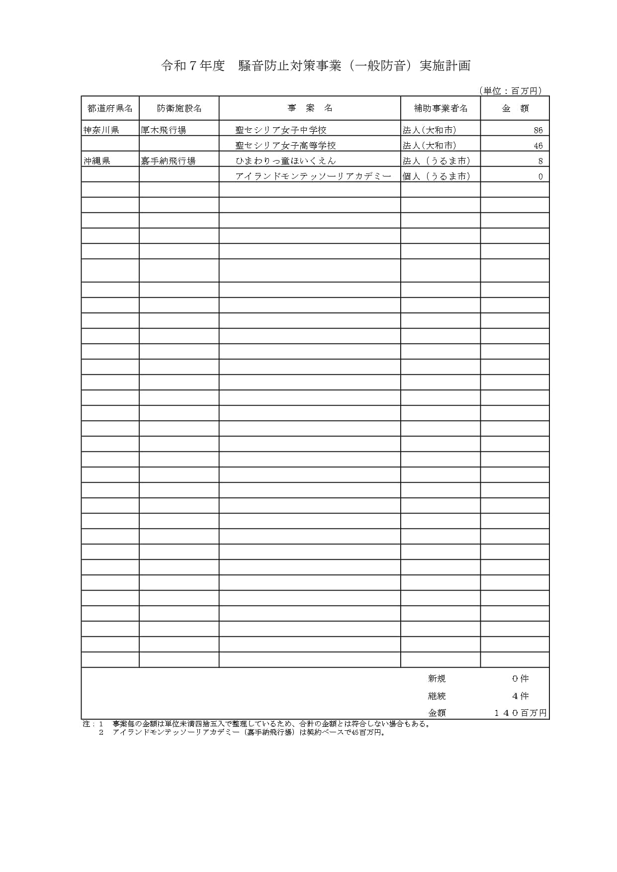 令和7年度 騒音防止対策事業(一般防音)実施計画