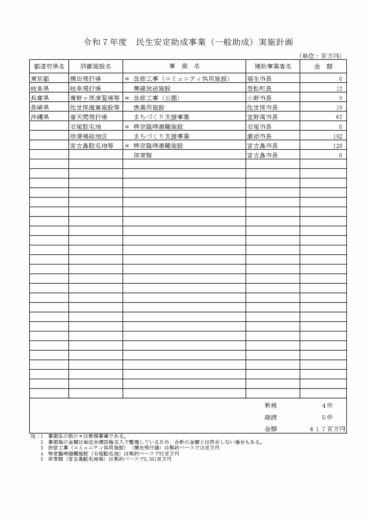 防衛省が令和7年度の補助金関係の実施計画(第4回)を公表(12月1日)