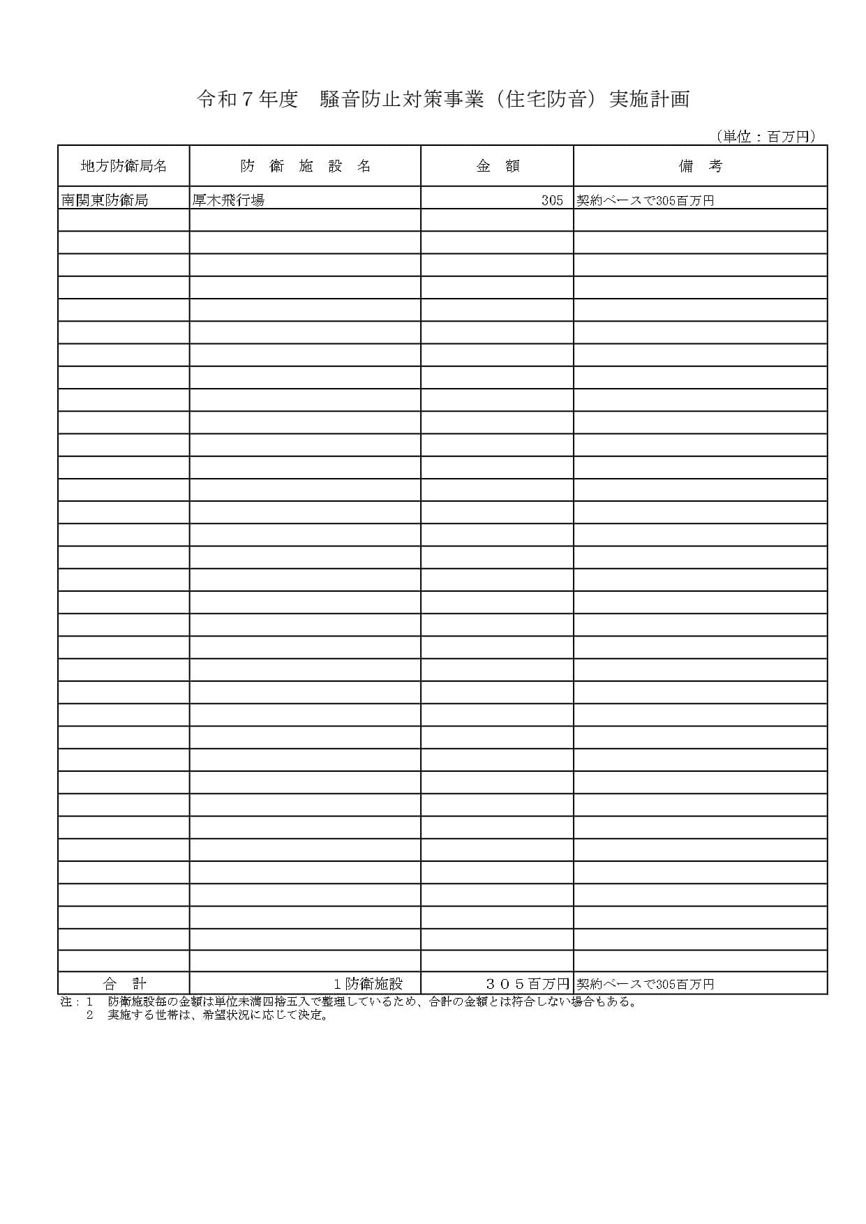 令和7年度 騒音防止対策事業(住宅防音)実施計画