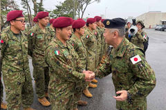 また、陸幕長は第9サイバーセキュリティ連隊及び第8騎兵連隊を訪問するとともに、陸自から本年初参加となる伊陸軍主催多国間空挺演習マングスタ25視察をマシエッロ伊陸軍参謀長と共同で行い、第1空挺団の隊員を激励しました。