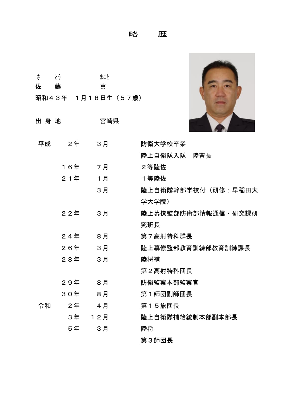 陸将 佐藤 真(第3師団長)