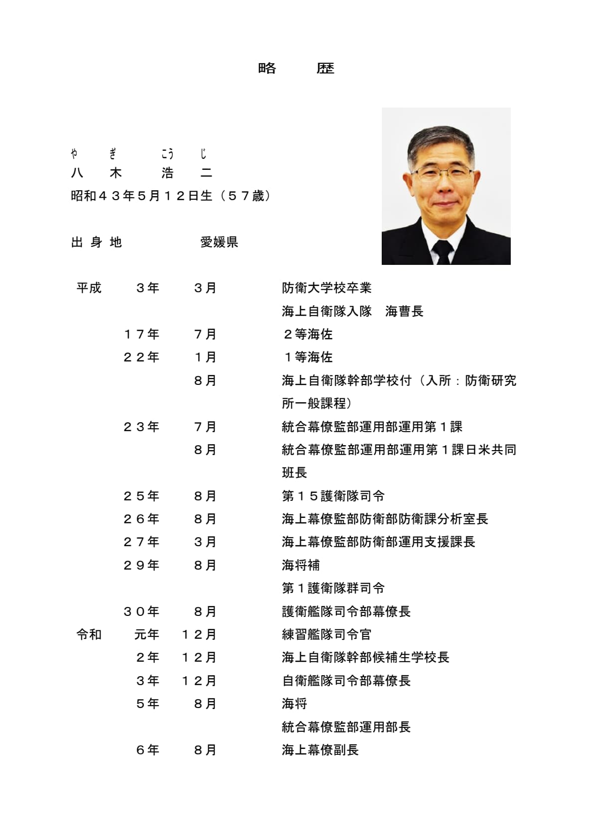 海将 八木浩二(海上幕僚副長)
