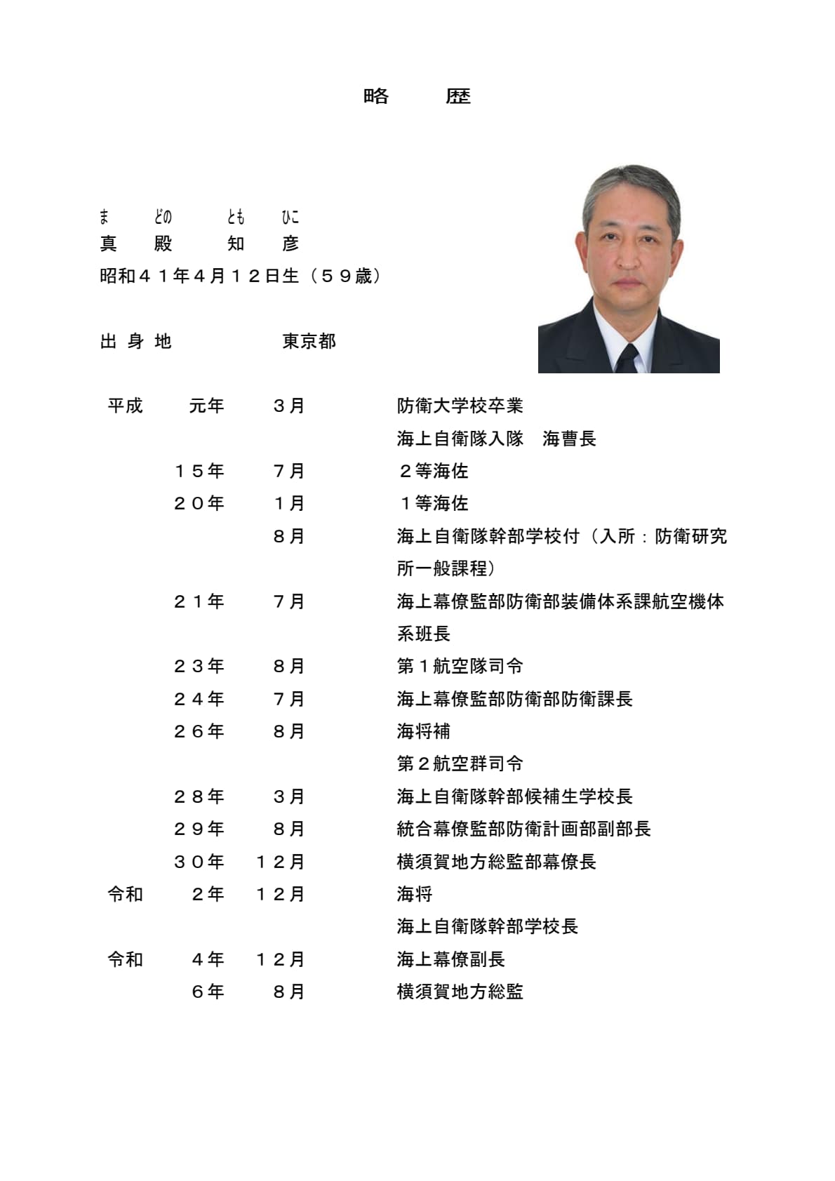 海将 真殿知彦(横須賀地方総監)