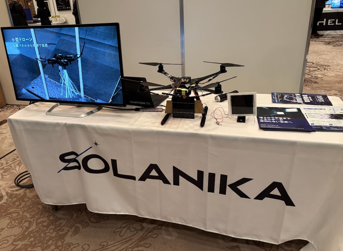 SolaNikaは、2025年5月に設立されたばかりのまさにスタートアップ企業であり、ドローンに対するレーザー無線給電システムの研究開発・製造を行っている。これは、地上設置型のレーザー送電装置から、飛行中のドローンに装着した30cm角の受電パネル(薄膜軽量ソーラーパネル)にレーザーを照射して、ワイヤレスで機体に電力を供給するというもの。これまでは、長くとも数十分の飛行でバッテリー交換が必要とされてきたバッテリー駆動型のドローンだが、この技術が確立すれば、部品類の機械的故障などの要因を除けば理論上は無制限の連続飛行が可能となる。現在の給電出力は44Wだが、2026年度には500W級の出力を目指す計画で、伝送距離も現在は100mだが理論上は数kmまで対応することが可能だという。(稲葉義泰)