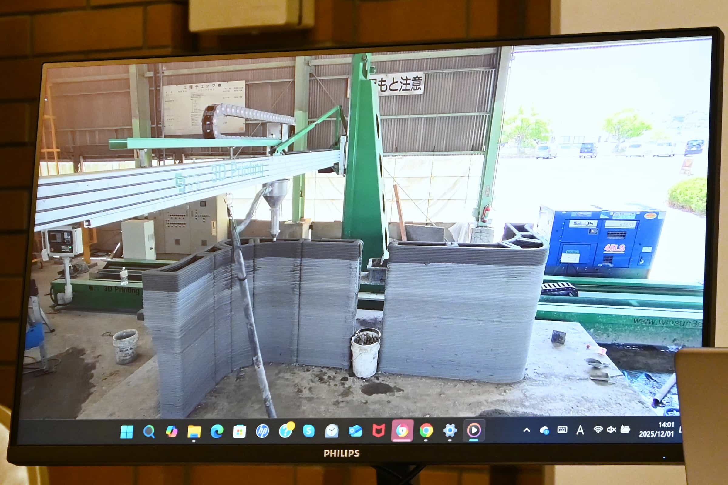 建設用3Dプリンターと専用高流動モルタル(セメント)を用いて、短工程・低コストでの建築を実現したのがセレンディクス株式会社である。能登半島の地震の後、最初に復興住宅を完成させたことで知られ、ウクライナでの戦後復興施設の建設を計画している。同社が防衛分野に提案するのは、やはり同工法を用いた建築。かなり頑丈に作ることができ、前線拠点、野外防護施設、耐弾耐爆構造を迅速に成形が可能。シェルター(掩体壕)の提案も視野に入れている。