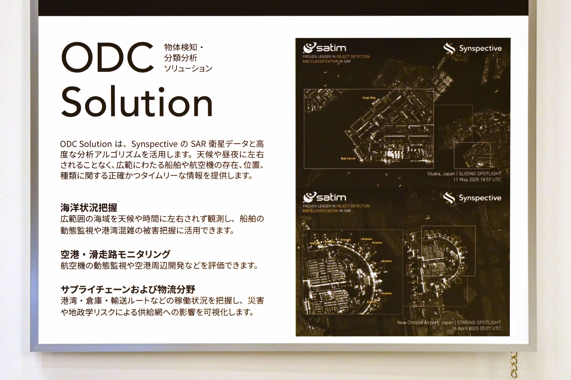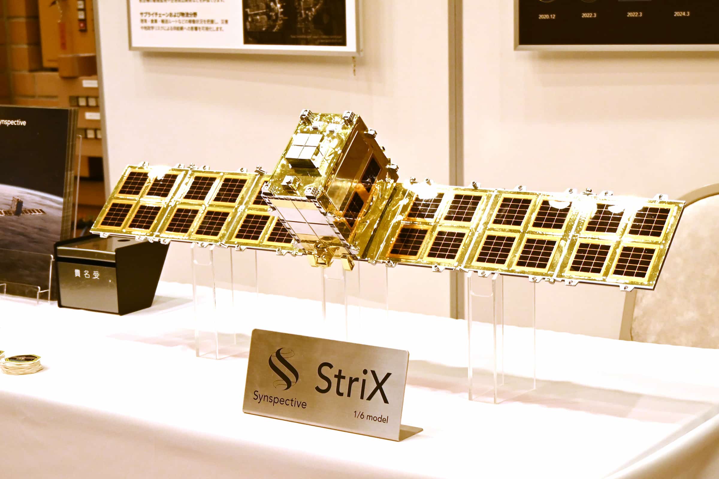 シンスペクティブは、合成開口レーダー(SAR)衛星の開発と運用、衛星データに基づく情報提供事業を手掛けるスタートアップ企業である。日本では、三菱電機の戦略的パートナーとして、安全保障用途での衛星画像販売に関する事業に携わっている。会場では小型SAR衛星StriX(ストリクス)の6分の1模型を展示し、その運用についてポスターで紹介した。