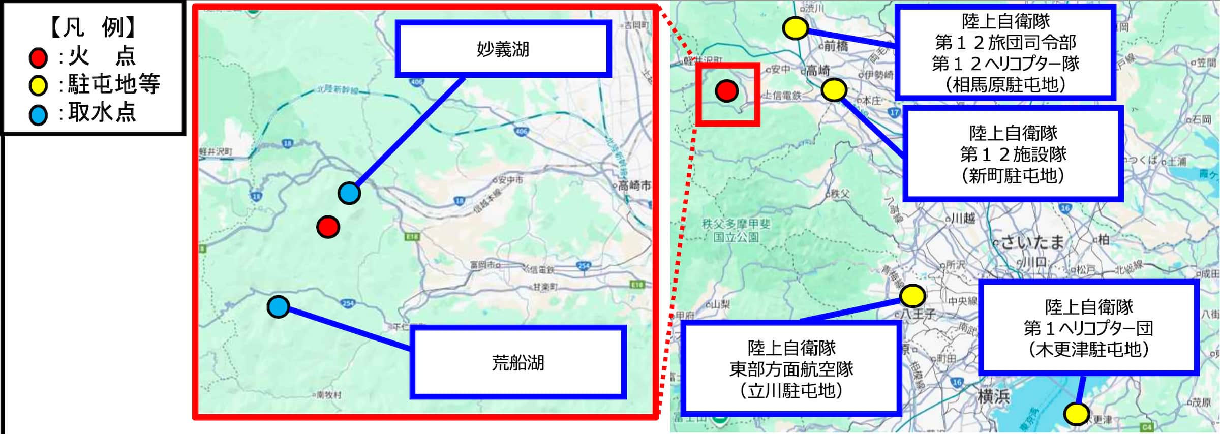 ○ 現地指揮所:陸上自衛隊第12ヘリコプター隊×2名