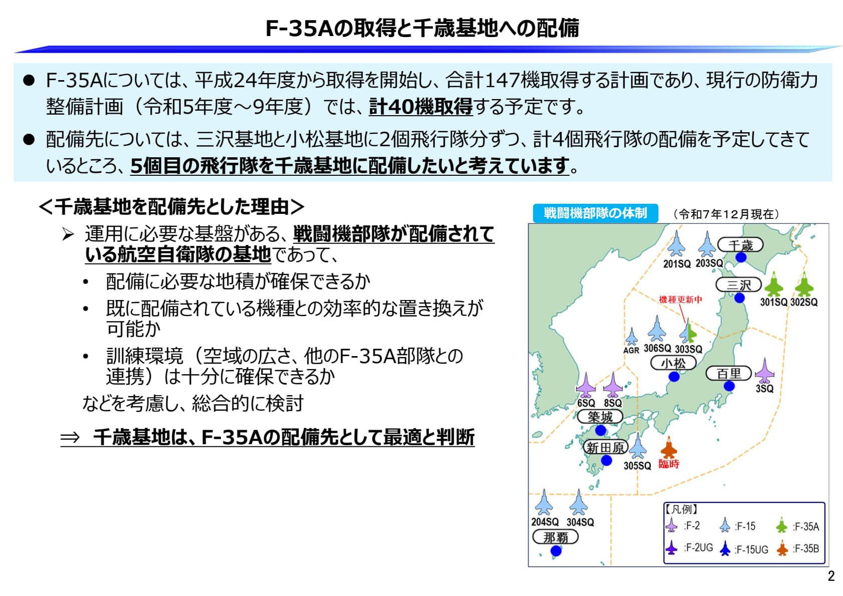 参考資料:F-35Aの航空自衛隊千歳基地への配備について