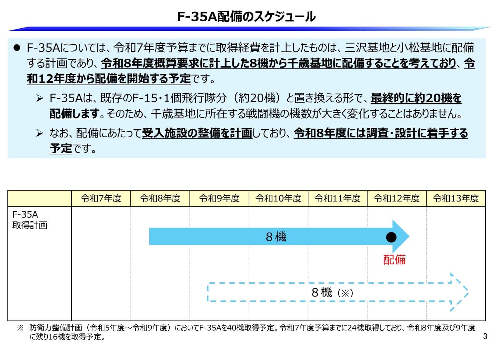 F-35A配備のスケジュール