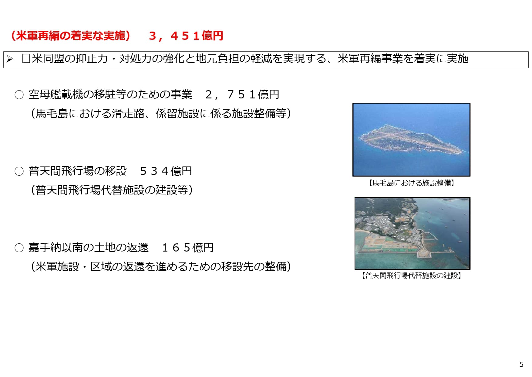 ・米軍再編事業を着実に実施(3,451億円)