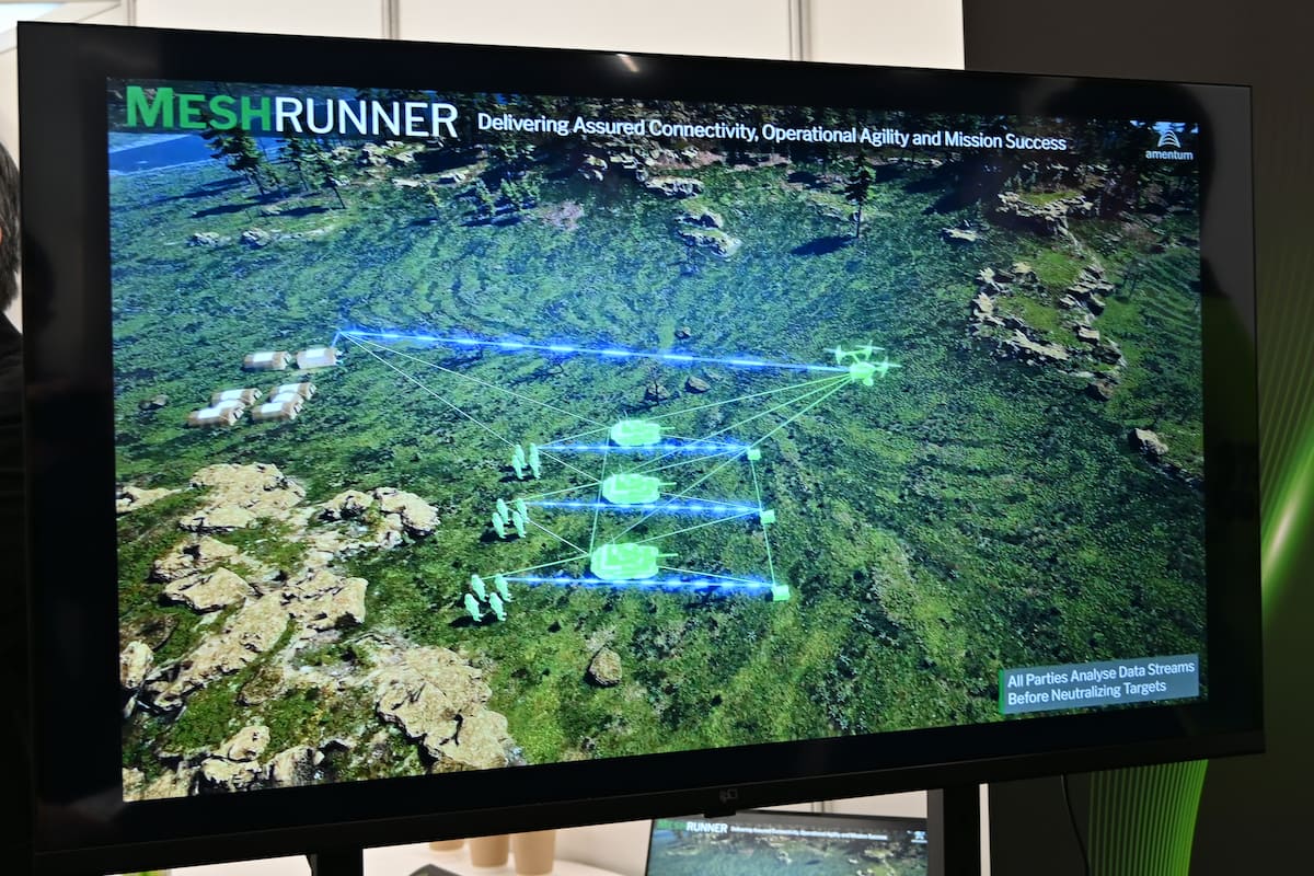一方で、アメリカの大手防衛関連企業であるアメンタム(Amentum)は、同社が開発を進めている指揮統制システム「メッシュランナー」(MeshRunner)をブースで紹介していた。