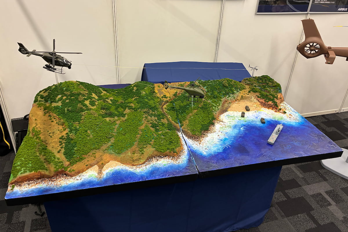 なかでも興味深かったのは、エアバス・ヘリコプターズのブースで紹介されていたVSR700だ。VSR700はヘリコプタータイプの無人航空機で、情報収集や物資輸送任務、さらにソノブイ投下能力を付与して対潜作戦などへの投入など、これまでも幅広い運用方法が展示会等の機会を通じて示されてきた。しかし、今回は陸上自衛隊への提案を意識してか、機関砲やミサイルを搭載することによる地上目標への攻撃能力をアピールしていた。