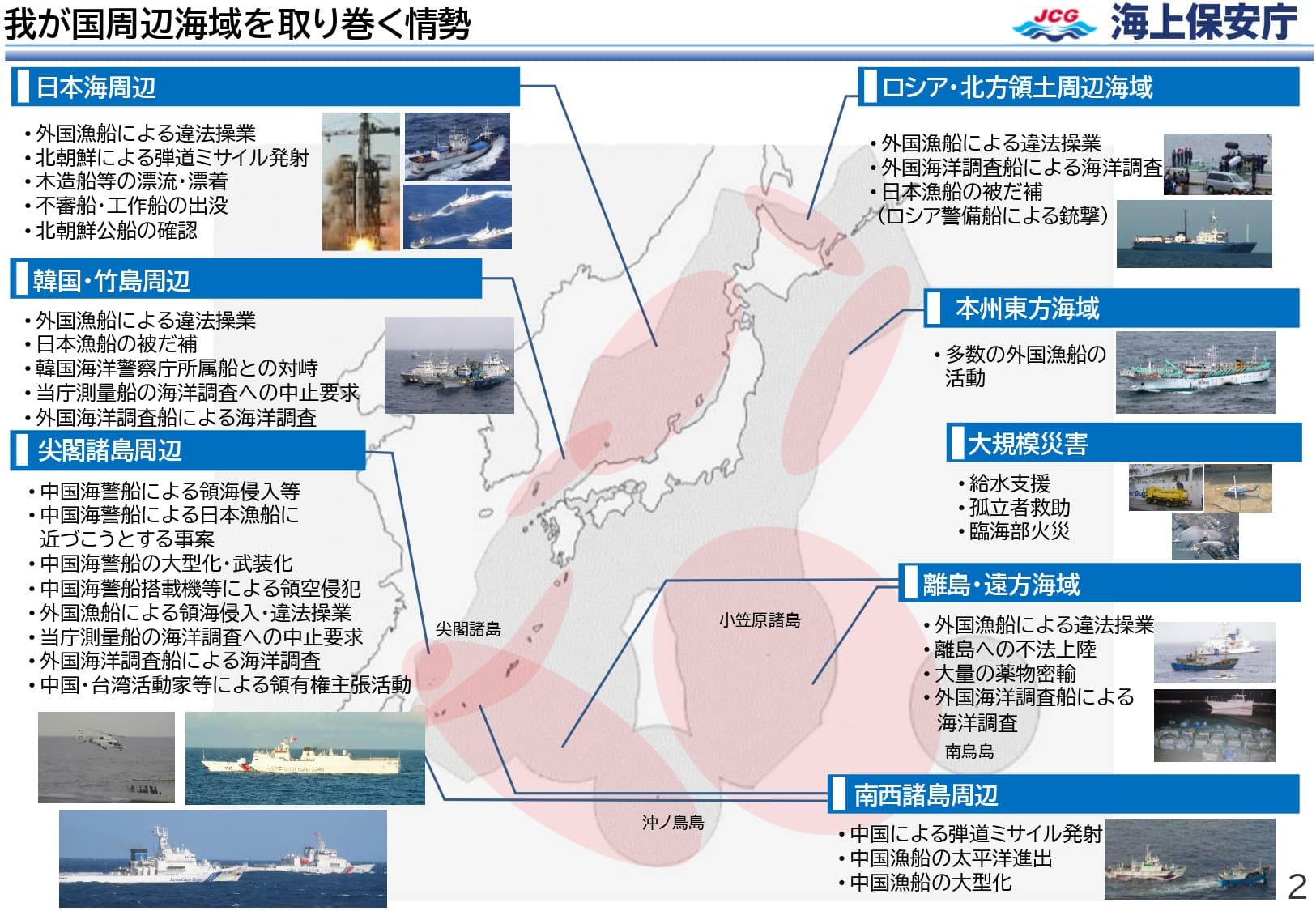 首相官邸の公式Webサイトによると、「海上保安能力強化に関する関係閣僚会議」は、我が国周辺海域における重大な事案の発生が増加し、海上の安全及び治安の確保に関して厳しい情勢となっていることに鑑み、海上保安能力を強化するために開催されている。
