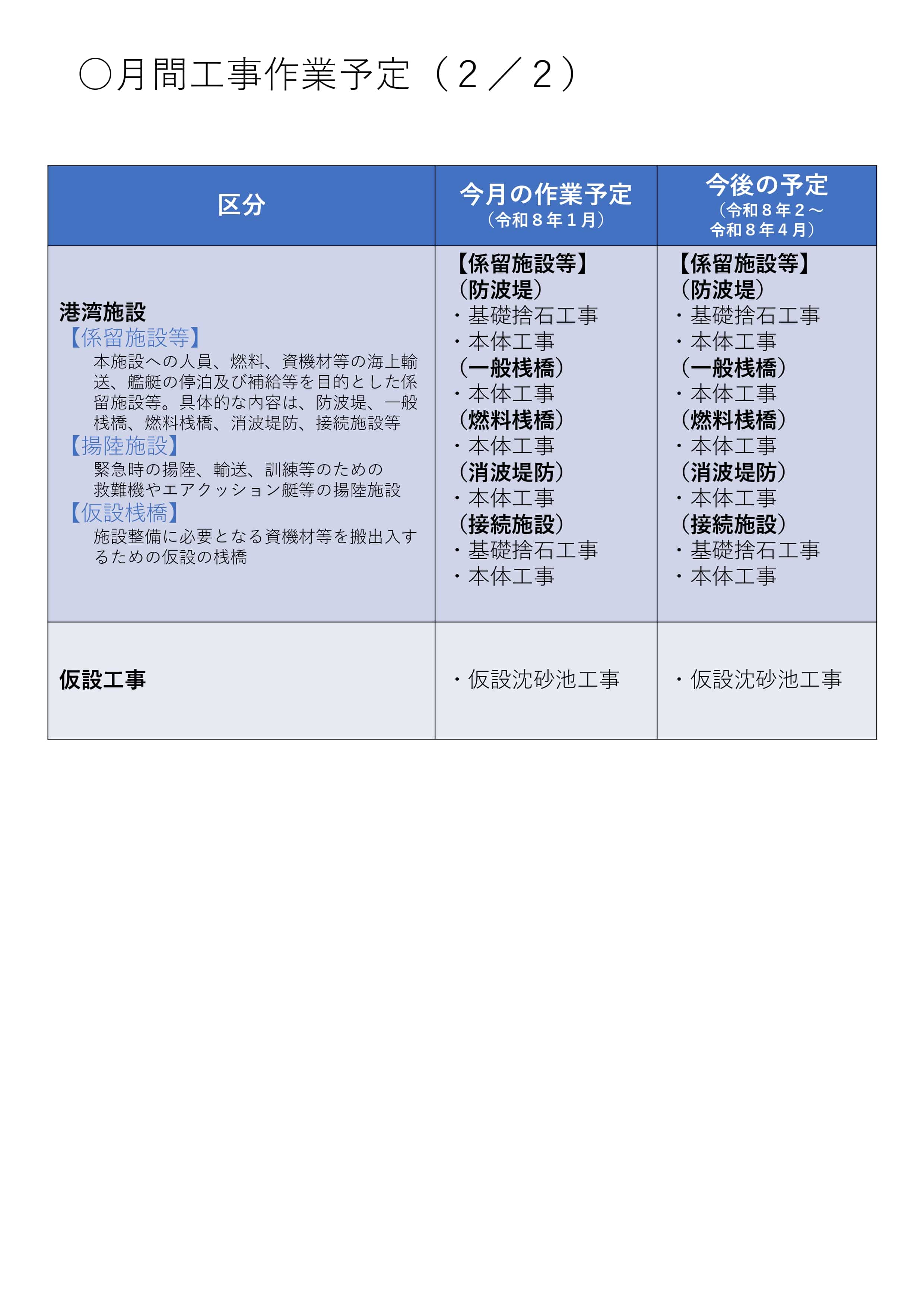 | 仮設桟橋 | 施設整備に必要となる資機材等を搬出入するための仮設の桟橋 | |