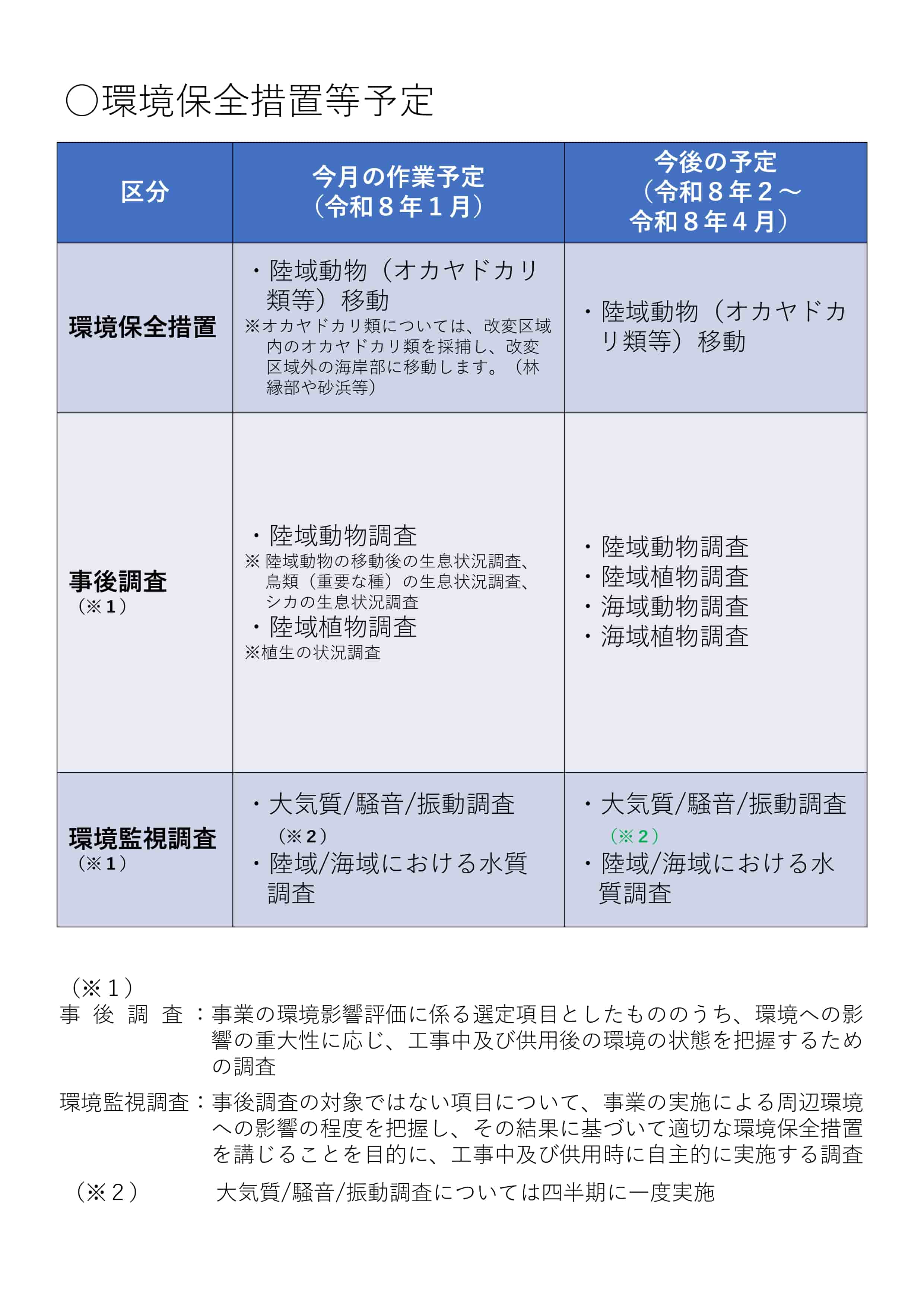 環境保全措置等予定
