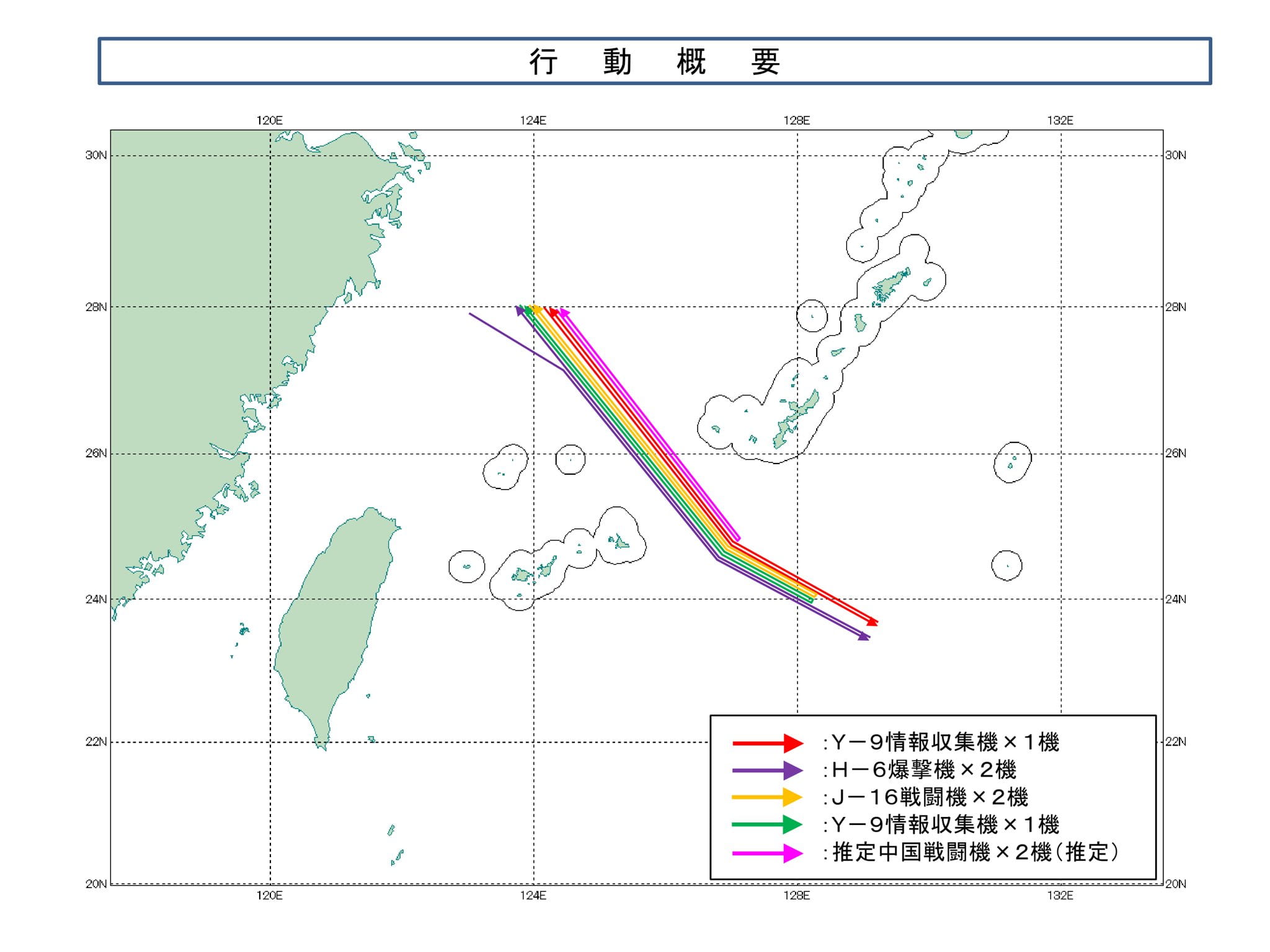 中国軍機8機が沖縄本島と宮古島との間を通過し太平洋へ進出(12月29日、H-6/J-16/Y-9ほか)
