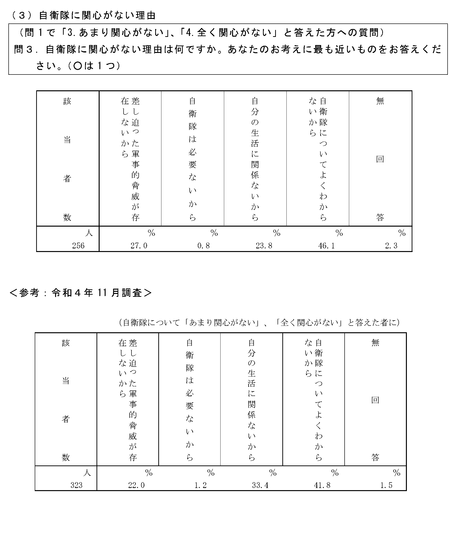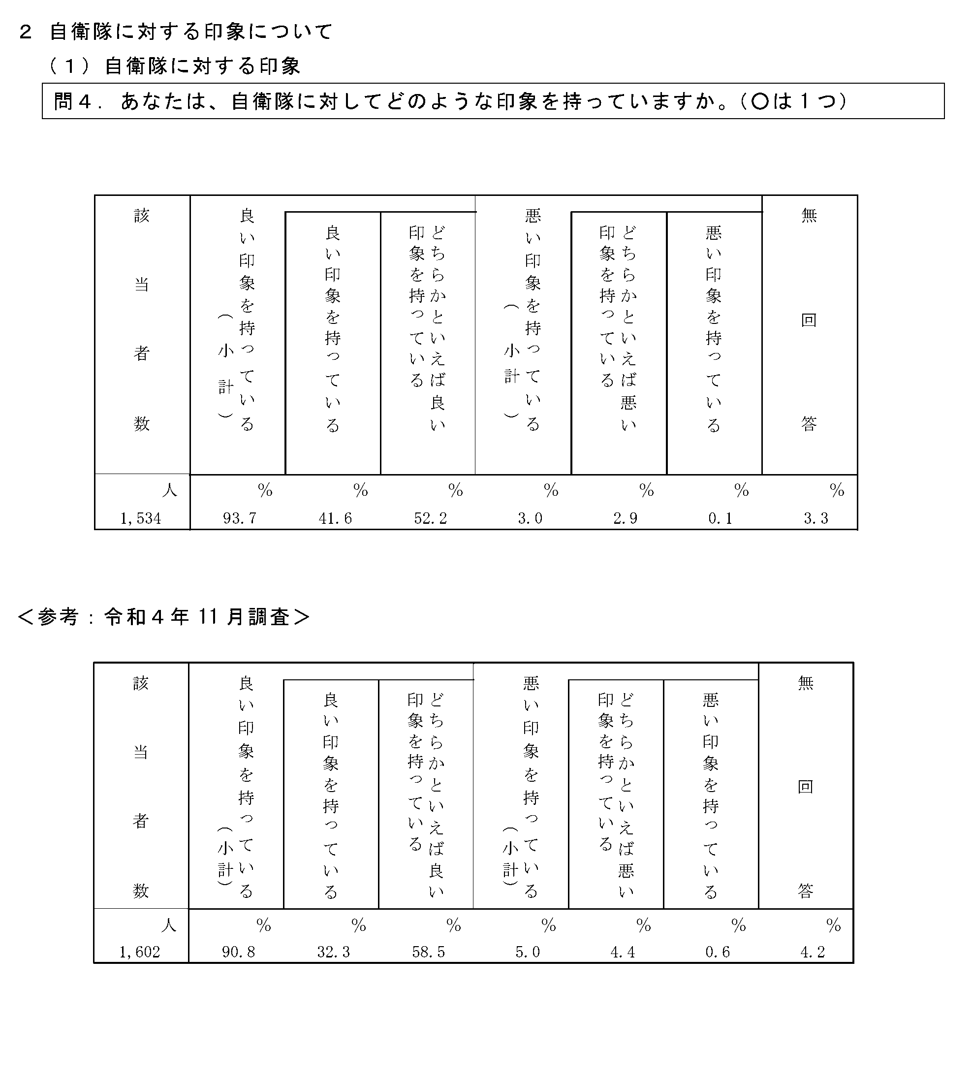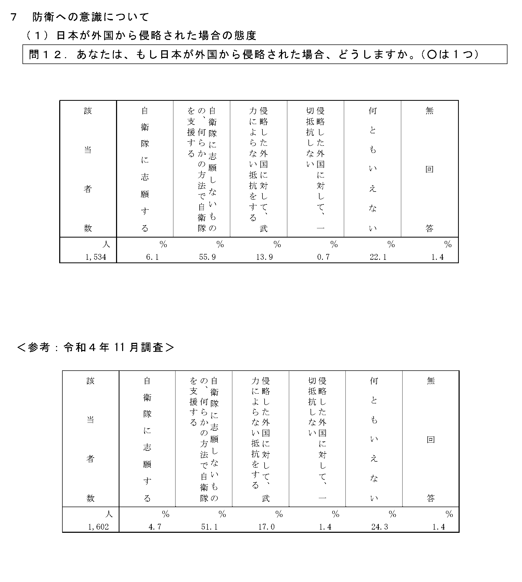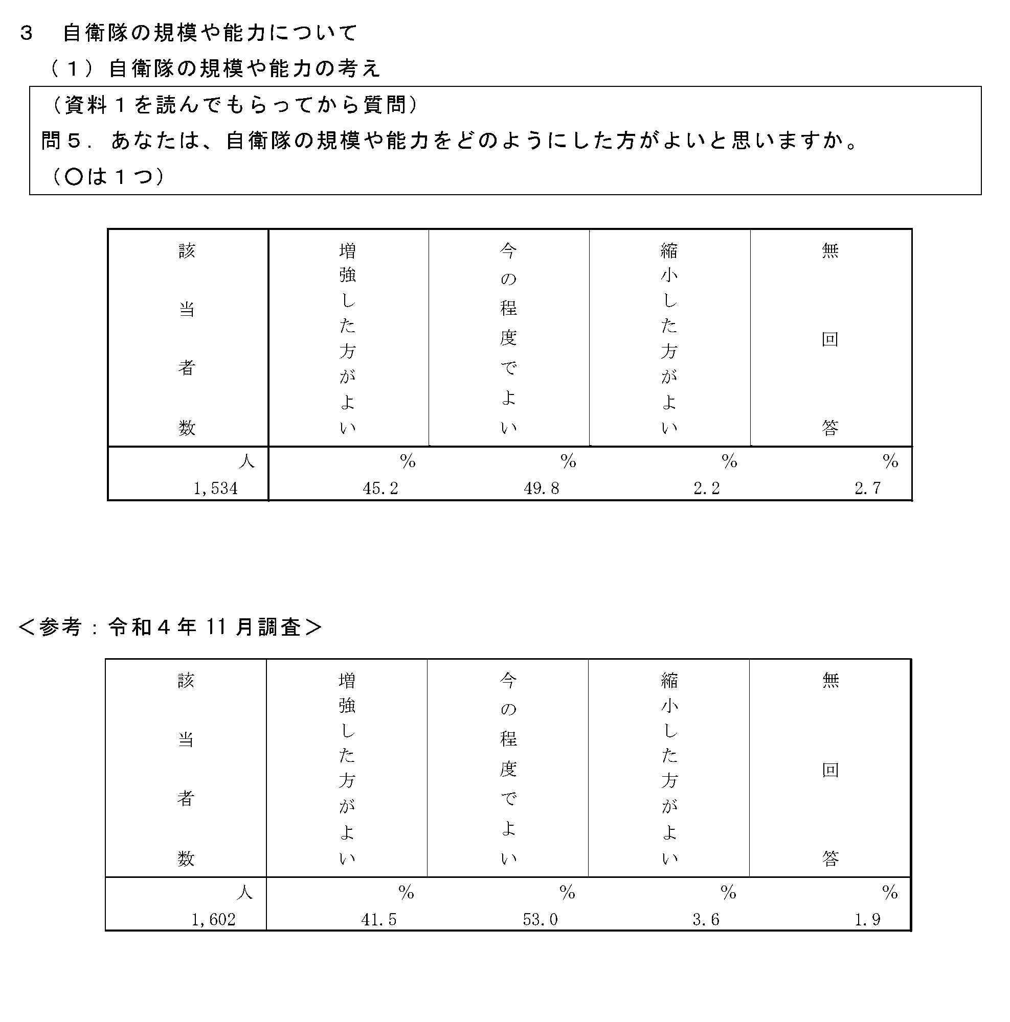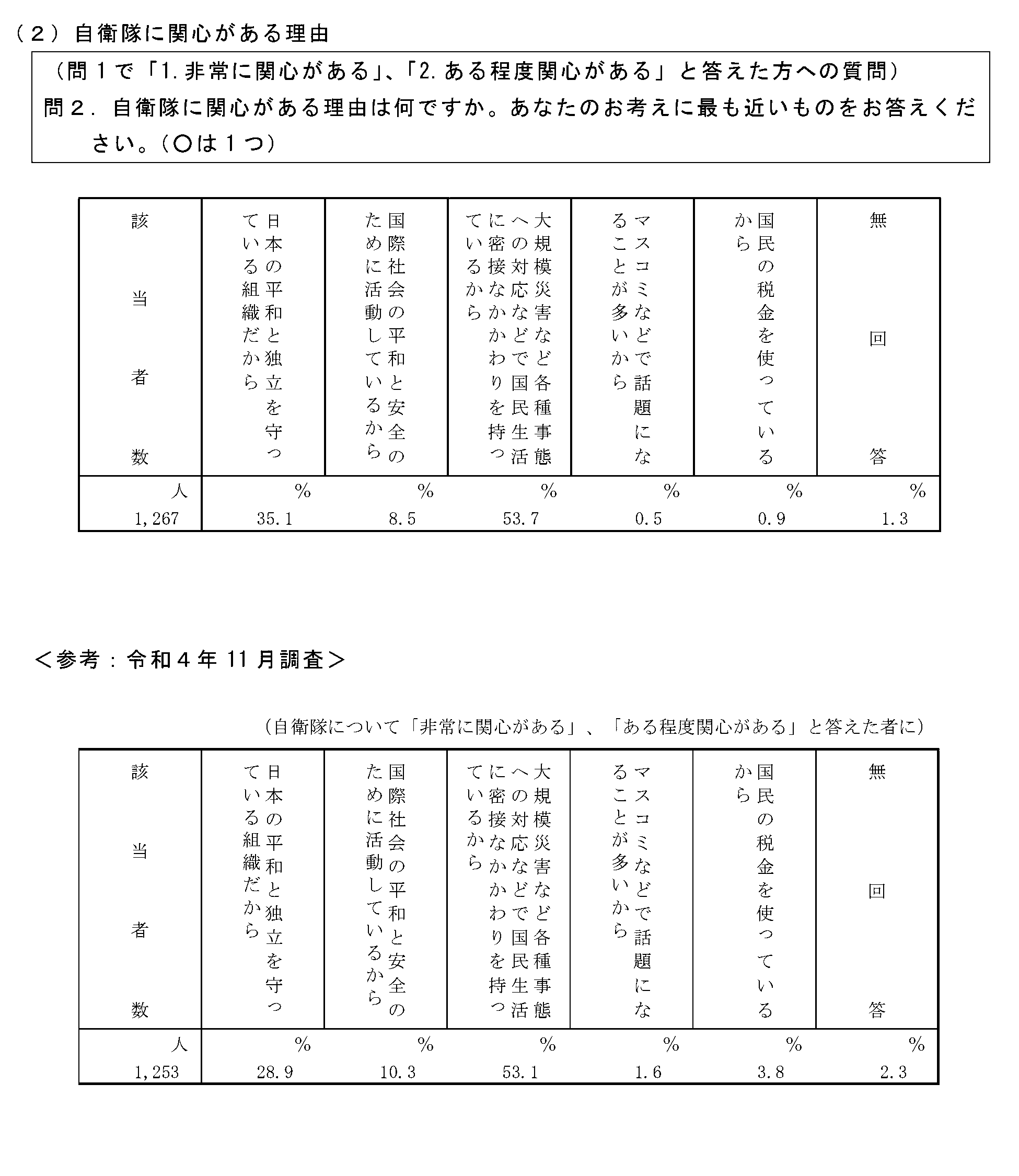 「自衛隊・防衛問題に関する世論調査(速報)」からの抜粋