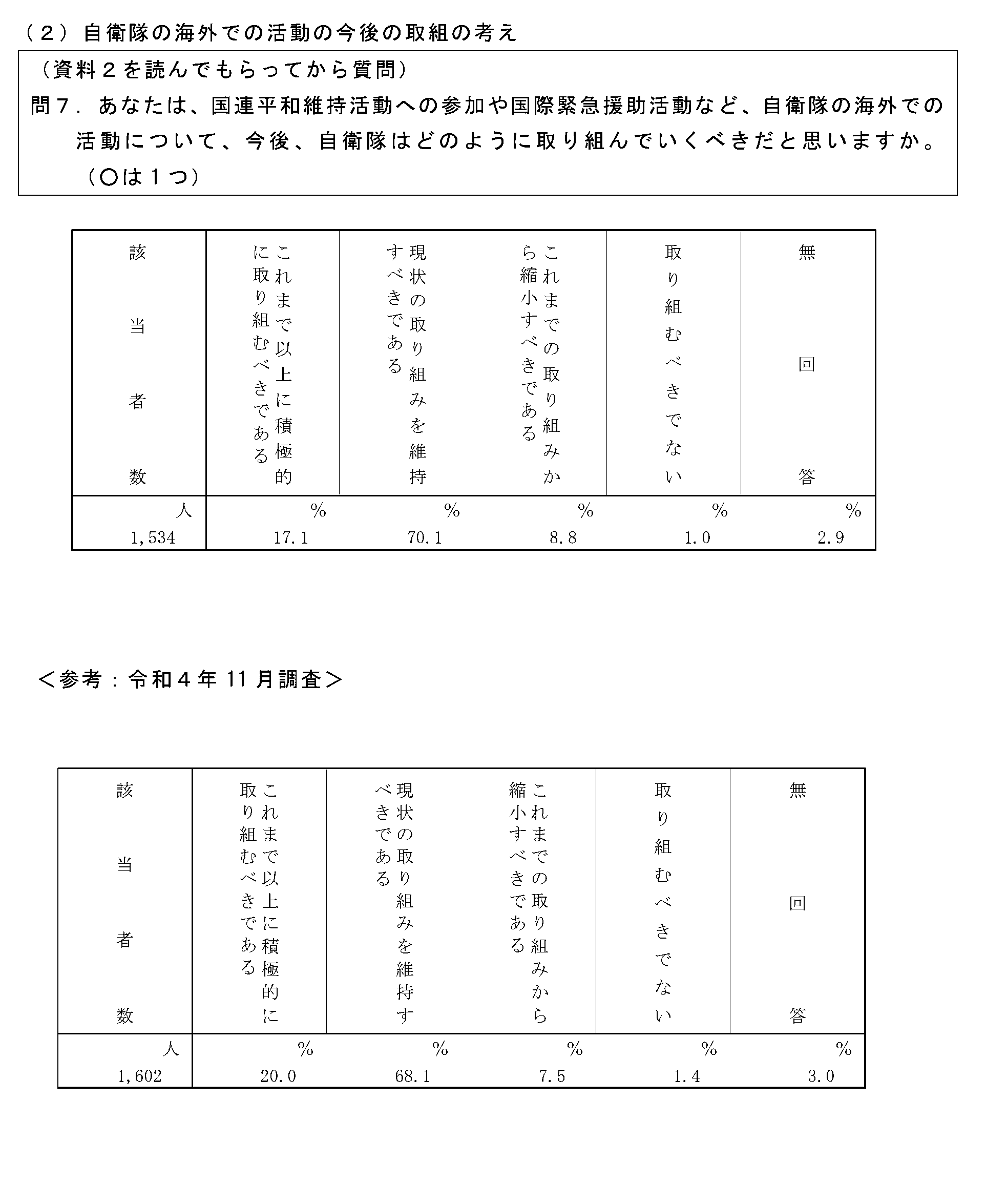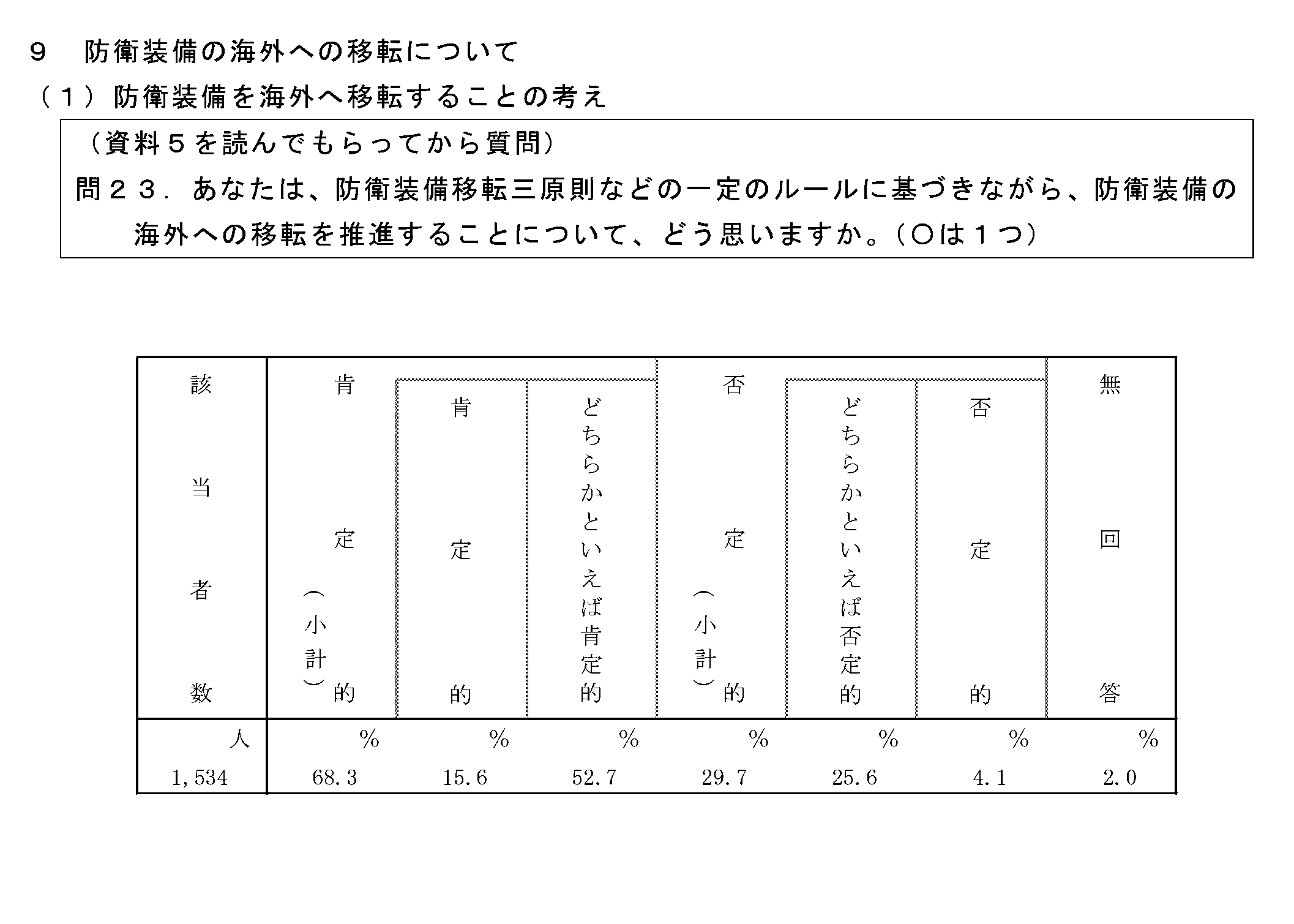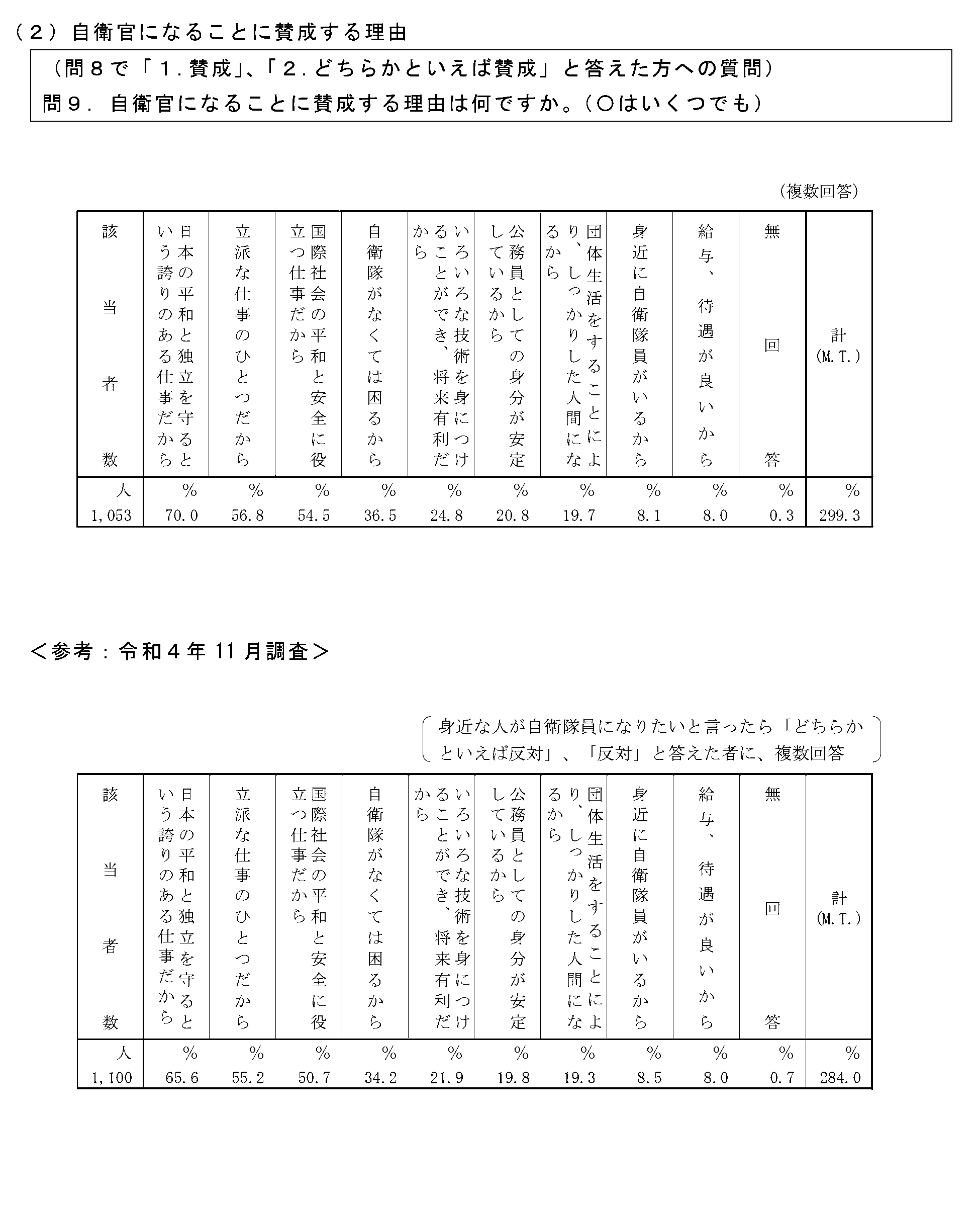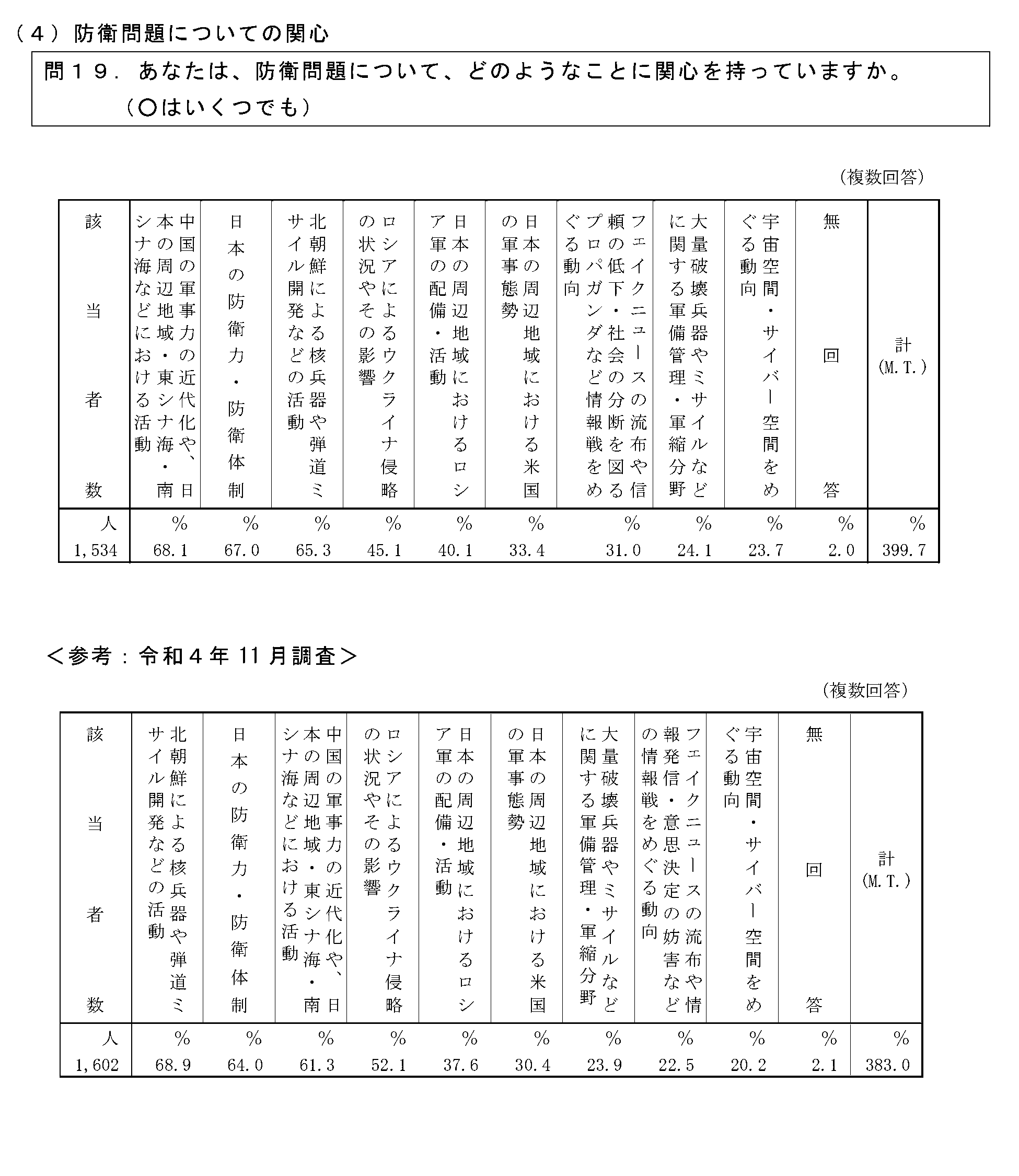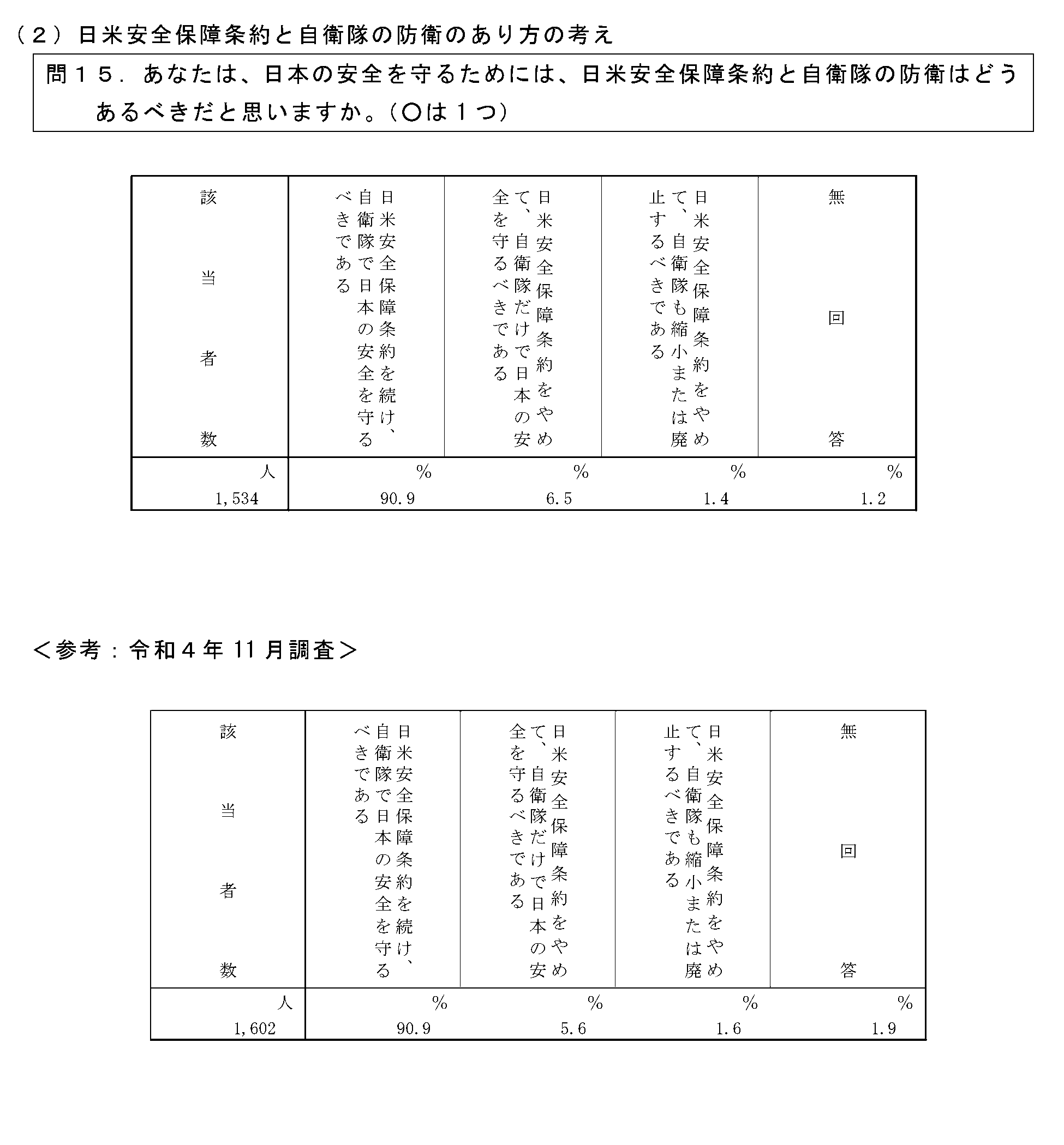 「自衛隊・防衛問題に関する世論調査(速報)」からの抜粋