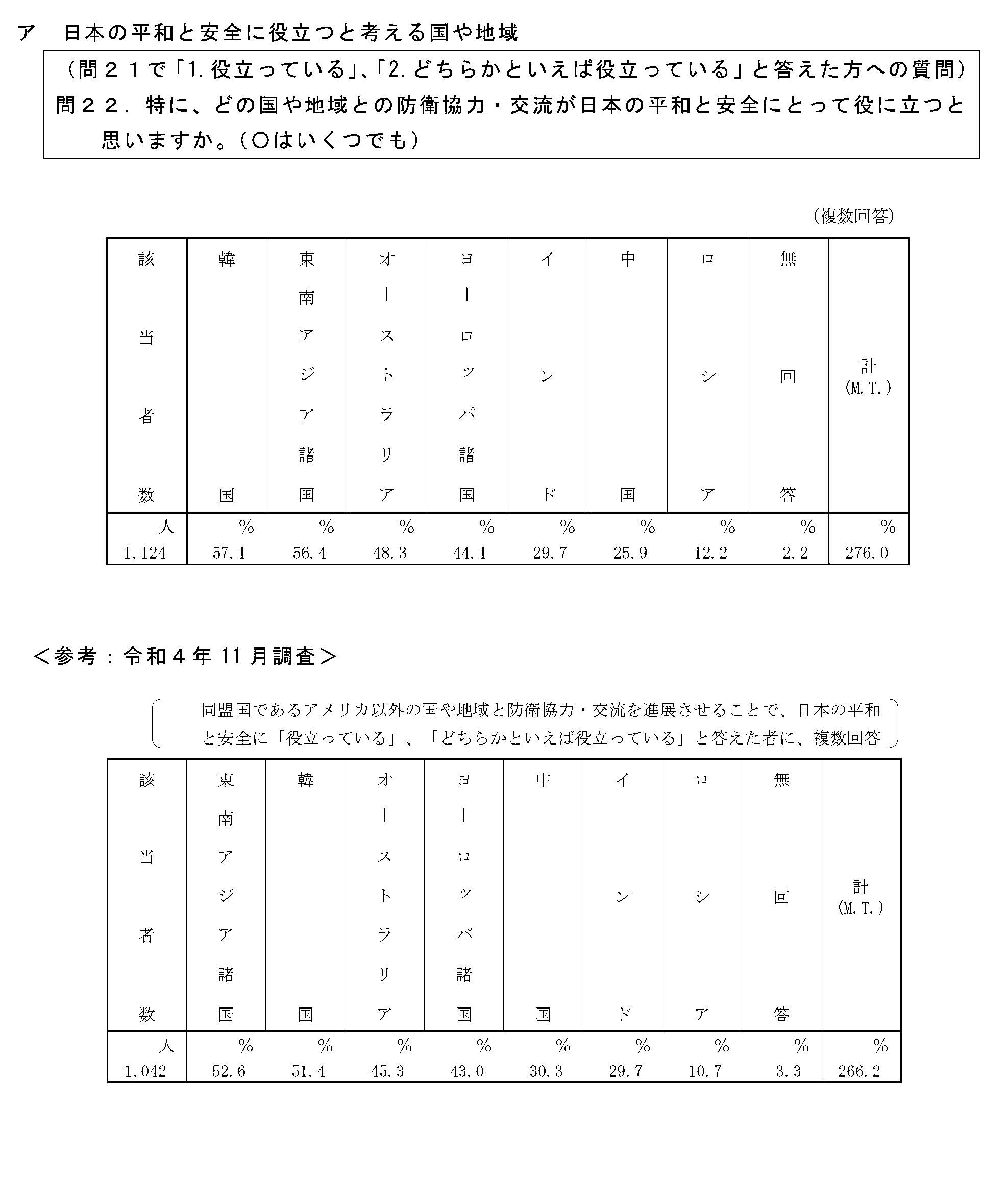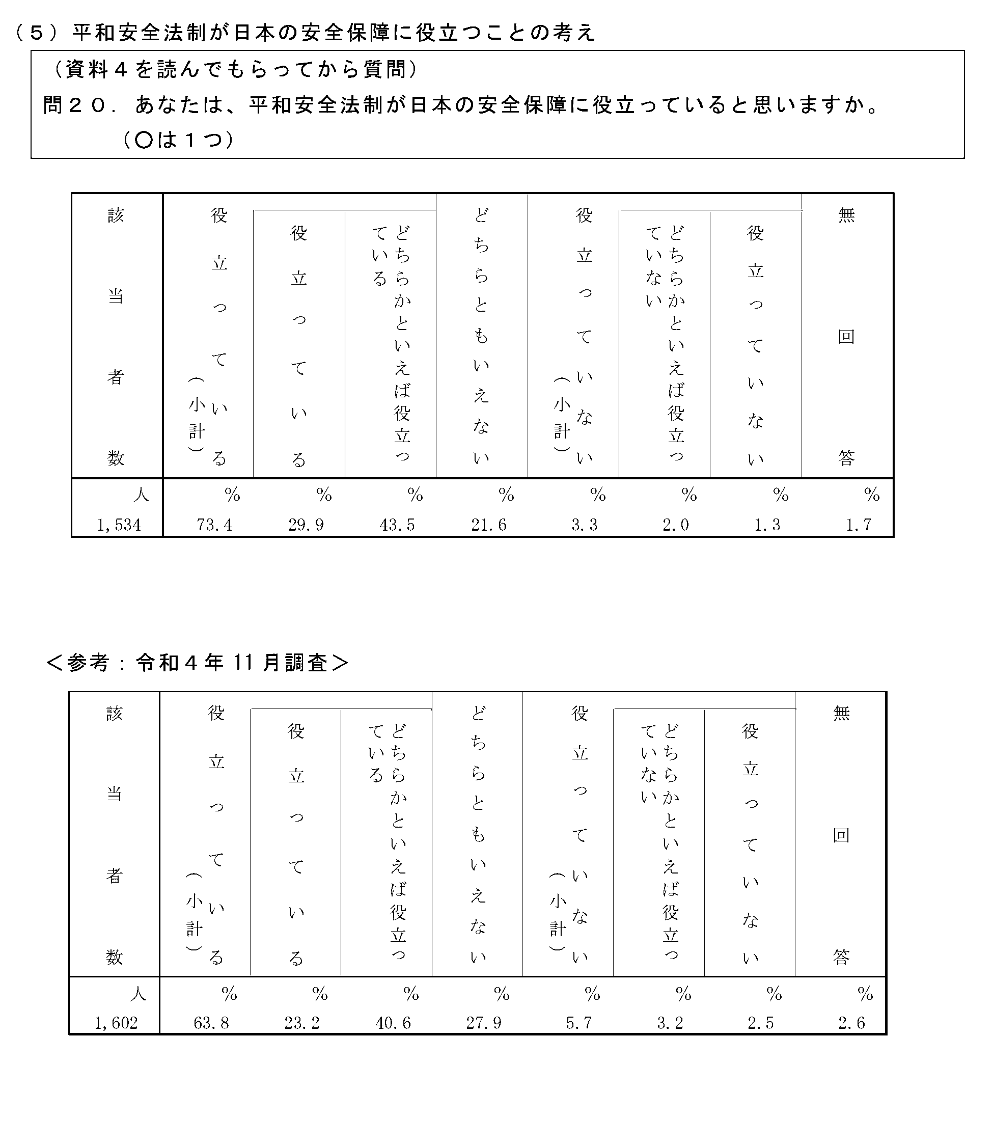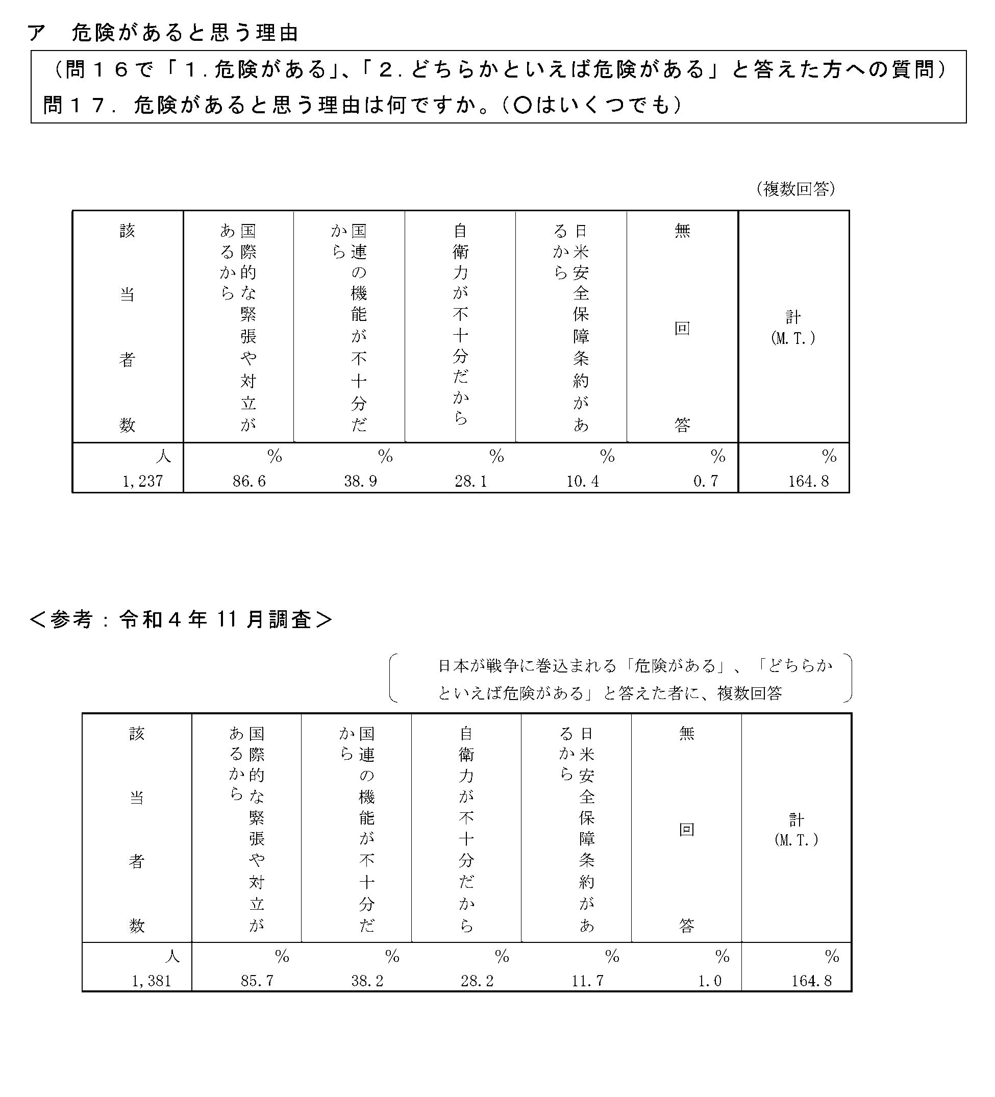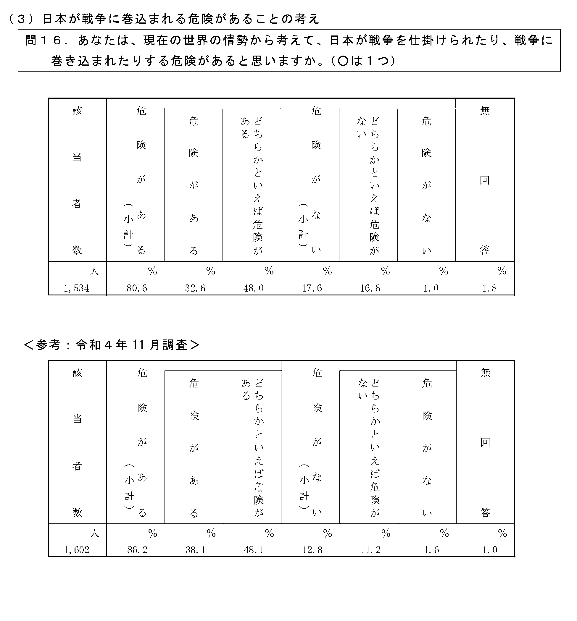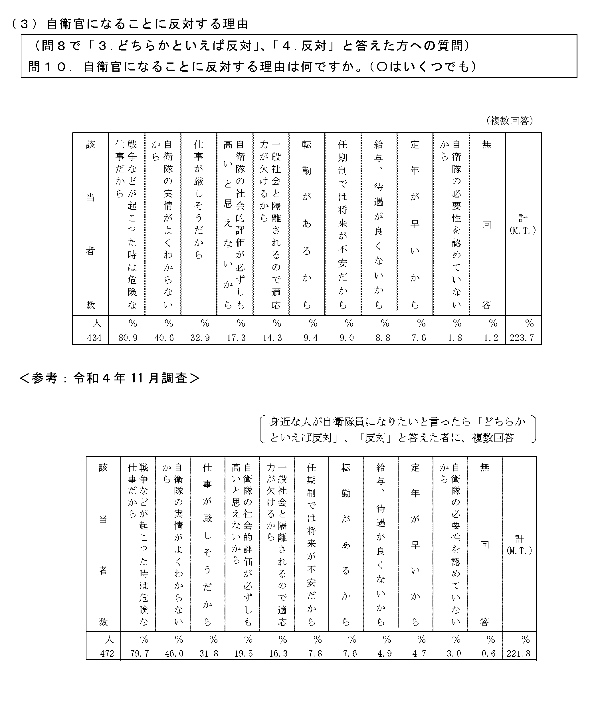「自衛隊・防衛問題に関する世論調査(速報)」からの抜粋