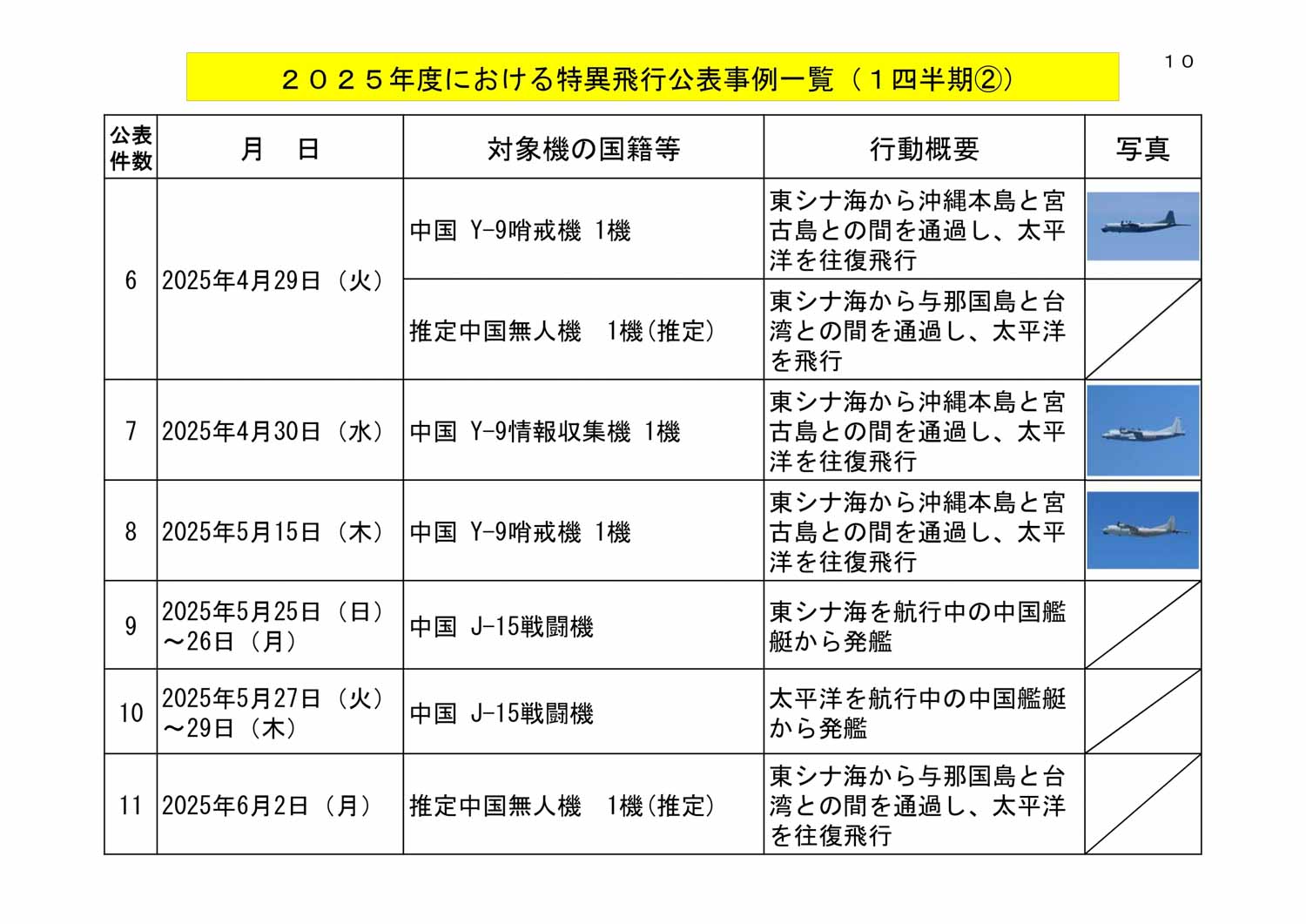 ・中国H-6爆撃機及び戦闘機等による沖縄本島と宮古島との間の通過
