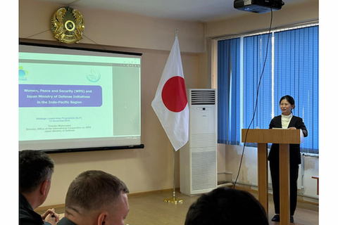 また、女性・平和・安全保障(WPS)に関して、防衛省・自衛隊による取組を紹介するとともに、カザフスタン軍による取り組みについて、情報共有や意見交換を実施しました。