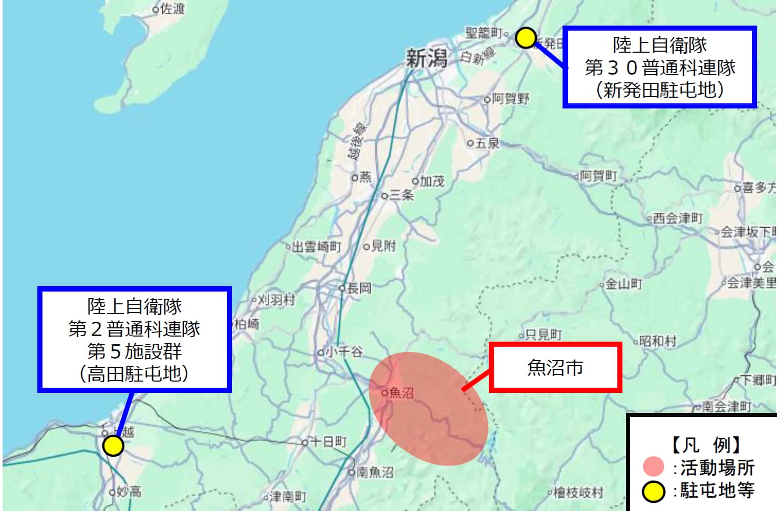 ・同日、陸上自衛隊第2普通科連隊(高田・新潟県)及び第5施設群(高田・新潟県)の隊員が、新潟県魚沼市において、高齢独居者世帯等の屋根の除排雪等を開始予定。