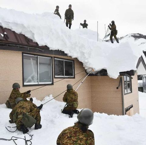 ○ 新潟県魚沼市において、記録的な豪雪を観測。自治体等のみでは必要な除排雪の対応が困難なことから、2月9日(月)10時00分、新潟県知事から陸上自衛隊第12旅団長(相馬原・群馬県)に対し、生活道路に隣接し、自力で除排雪を行うことができない要援護世帯(高齢独居者)等の屋根の除排雪等に係る災害派遣要請があり同時刻受理。