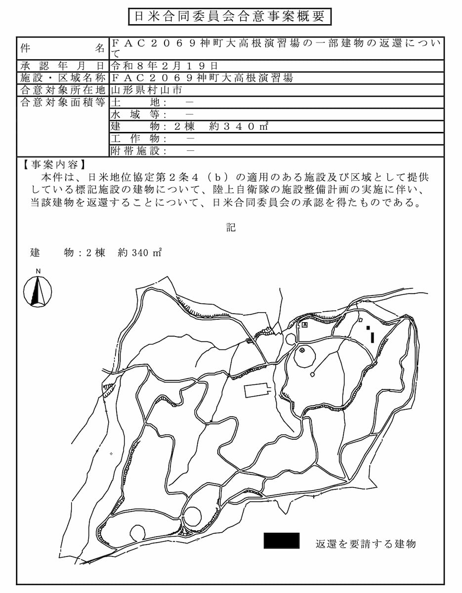 日米合同委員会合意の発表 神町大高根演習場の一部建物の返還についてほか5件について(2月19日)