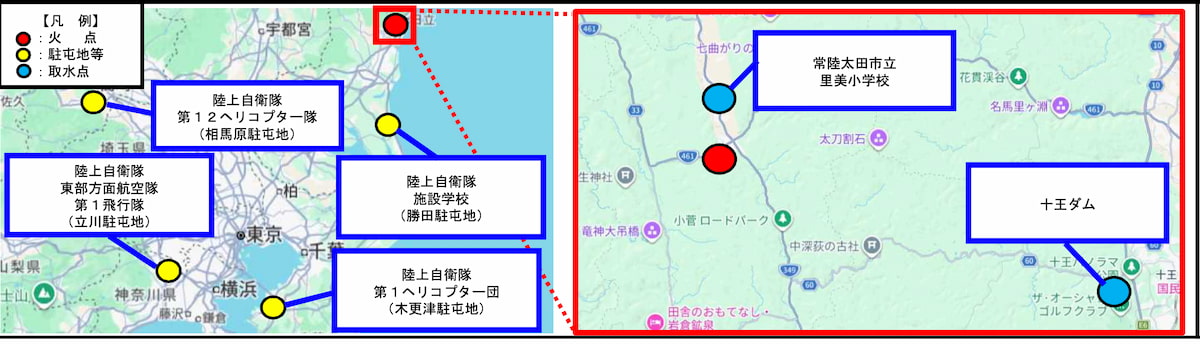 茨城県常陸太田市で林野火災 陸上自衛隊が空中消火活動等で災害派遣出動(2月24日、終報)