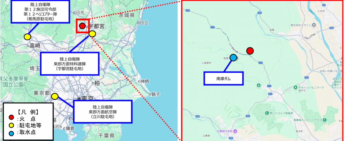 栃木県鹿沼市で林野火災 陸上自衛隊が空中消火活動等で災害派遣出動(2月25日、終報)