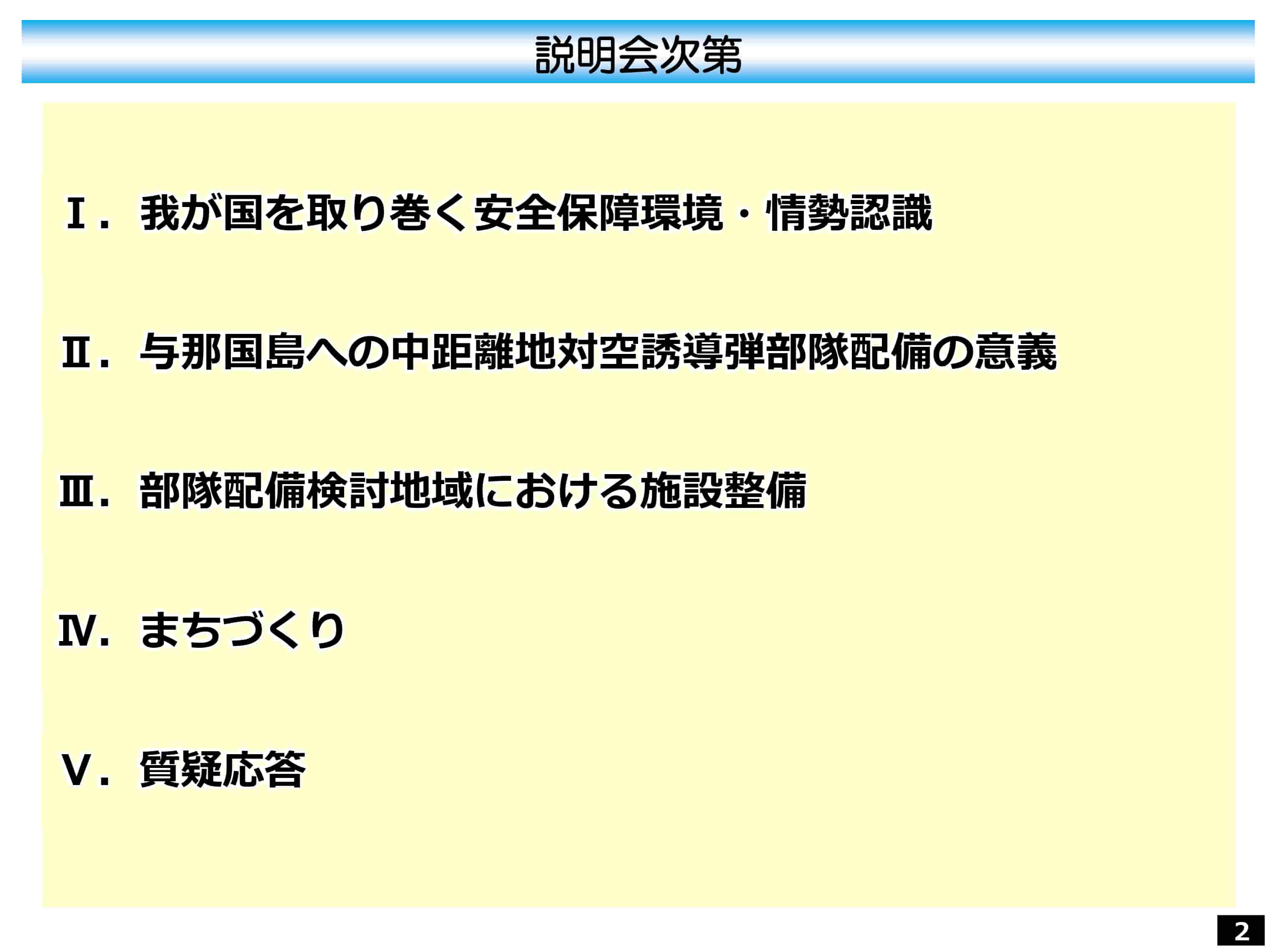 参考資料:与那国駐屯地への中距離地対空誘導弾部隊の配備に関する説明会