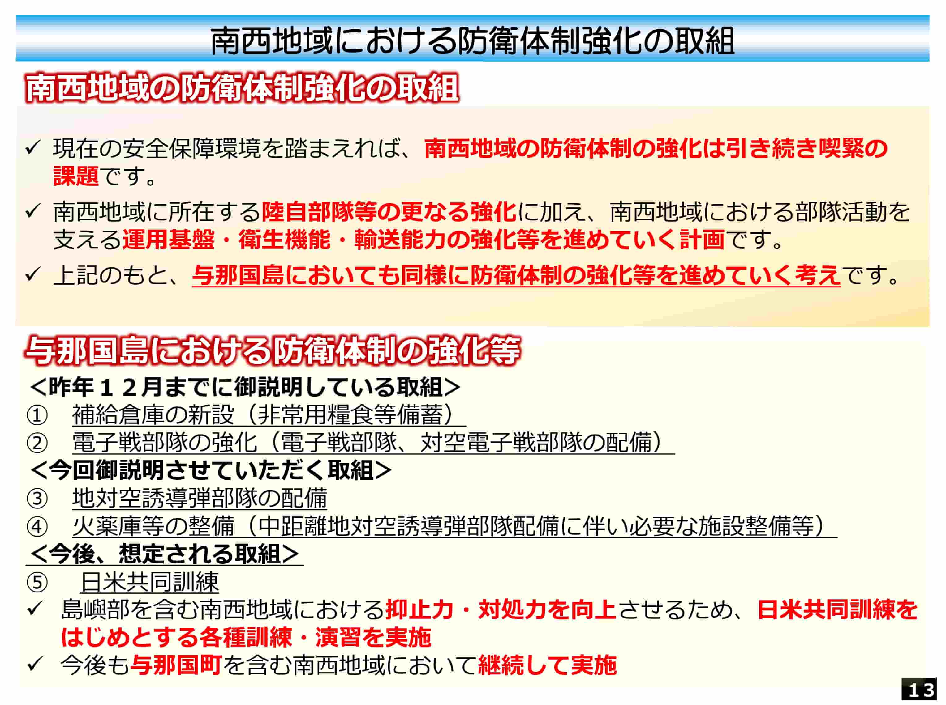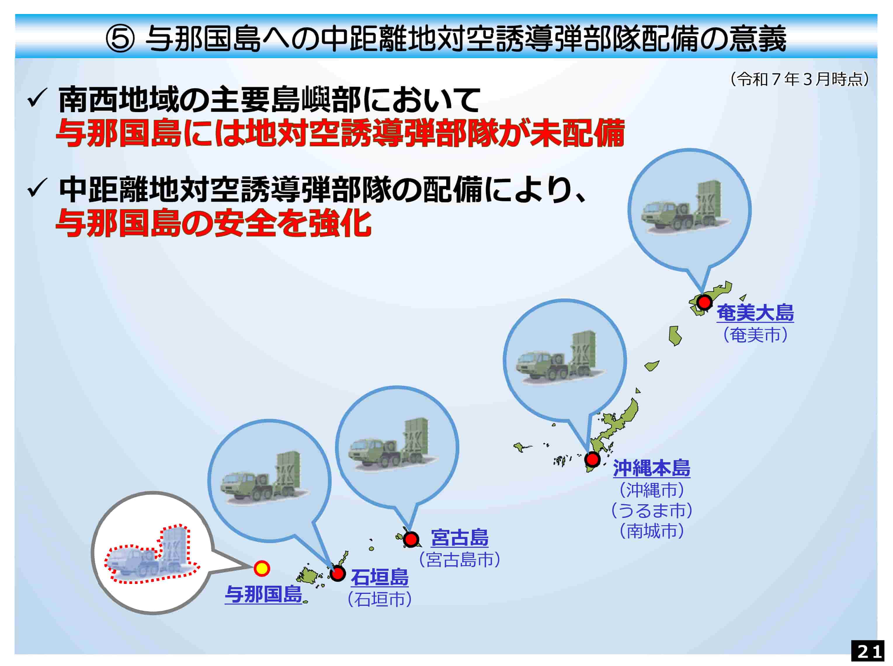 沖縄防衛局、与那国駐屯地への中距離地対空誘導弾部隊の配備に関する説明会資料を公開(3月3日)