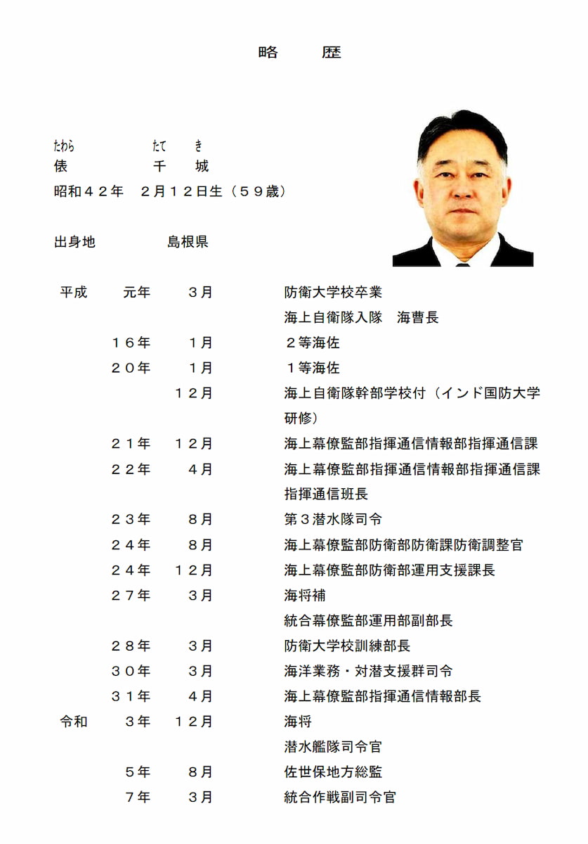 海将 俵 千城(統合作戦副司令官)