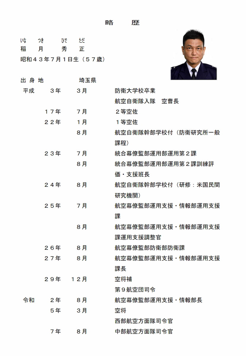 空将 稲月秀正(中部航空方面隊司令官)