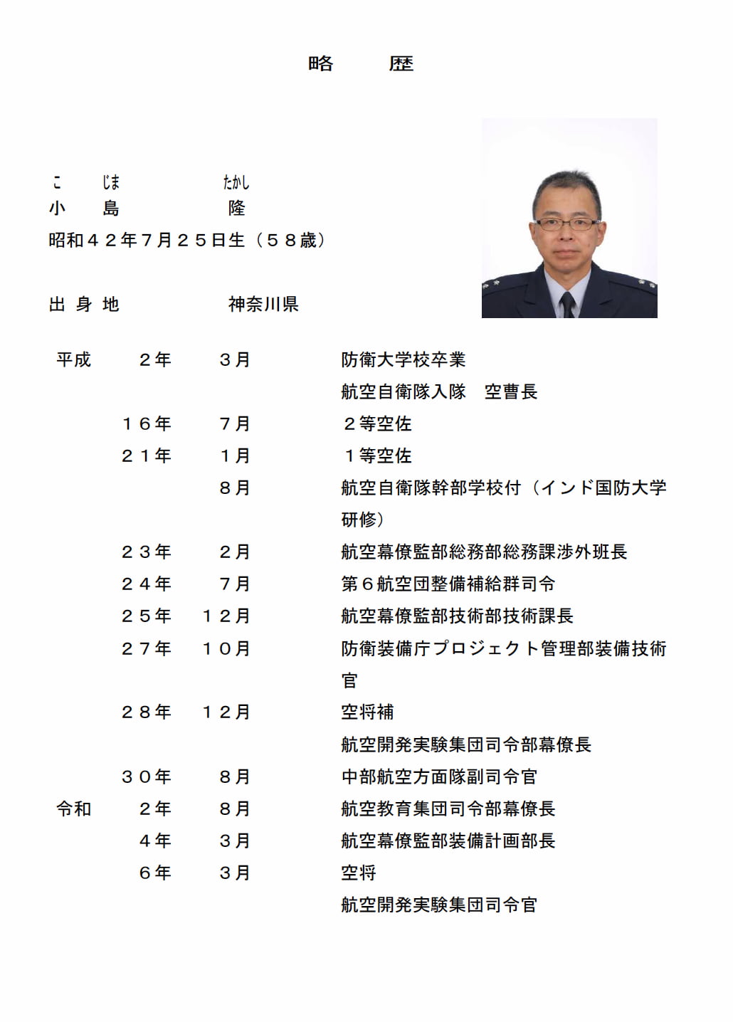 空将 小島 隆(航空開発実験集団司令官)